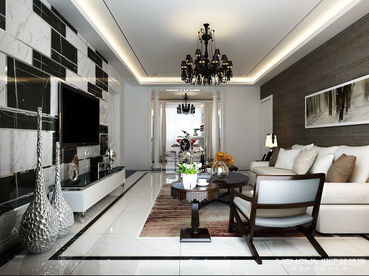 本案在简约风格中偏向于中国传审美,同时摒弃了现代简约中无法控制的娇柔造作,显示出业主高贵的审美情趣,缺又流落着东方之美。而海纳百川的祥云将更多的现代元素装载其中,凝练出另一种意义上的明快和简洁,自由地展示业主作为社会精英的从容。