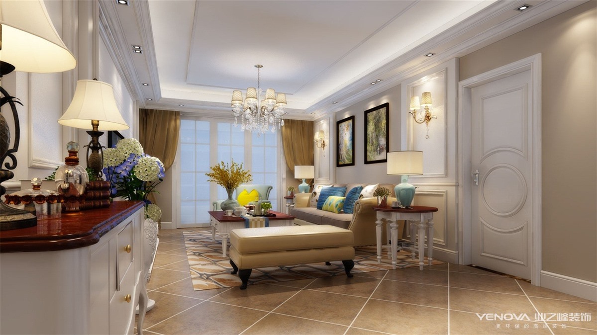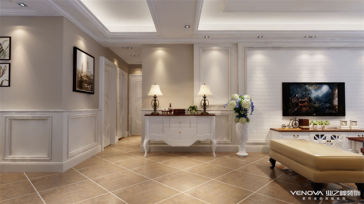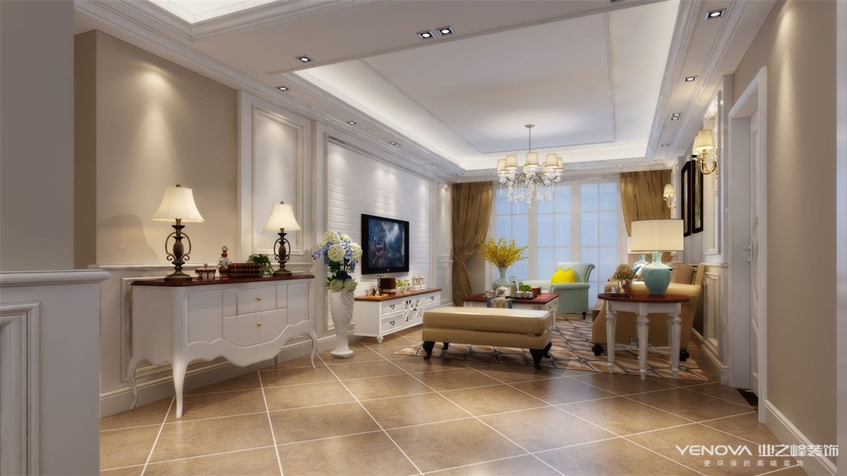 本案设计中将木色和米色完美结合,家加上地面拼花和仿古砖的配合,高档温馨,宽敞富气。搭配成品木色的家具,保留了古典家具的色泽和质感的同时,又适应现代生活空间。起居室等空间,以功能性和实用舒适性为重点,用质地柔软温馨的成套布艺来装点,色调缓和给人很舒服的感觉。