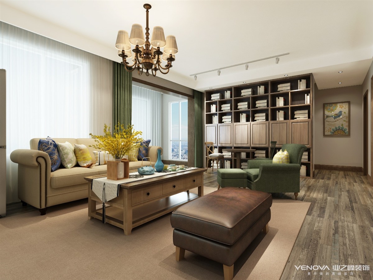 屋主希望这里永远散发着迷人的宁静气息,以自然元素以及现代化的家具进行装饰,在软装饰品的点缀下,满足屋主对理想空间的要求。设计师坚持“同空间多用途”的理念时,加入了存储的概念,质感复古中不失甜美的魅力。开放的布局保证了功能区的充足光线,实木家具搭配深棕色的真皮沙发,利用跳跃亮色搭配,带来令人深刻的视觉感受。