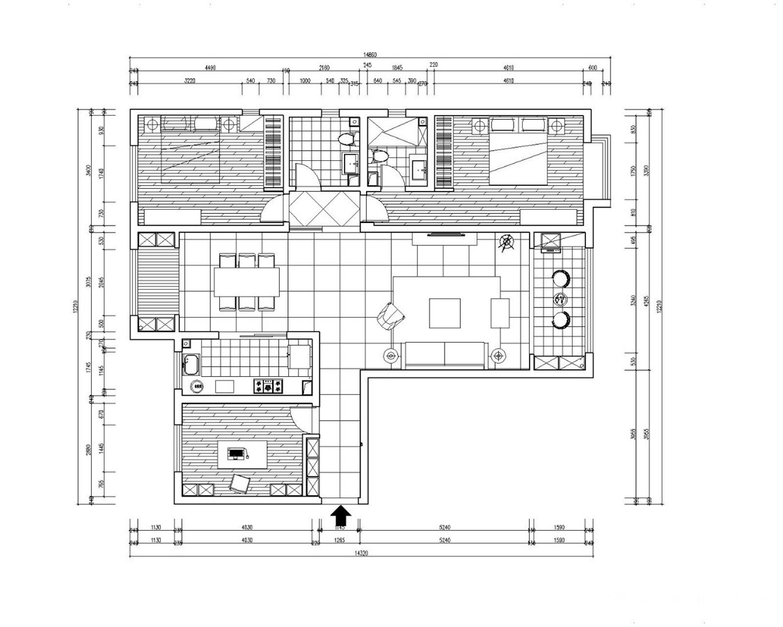 小区:西蒋峪 面积:140㎡ 户型:三居 风格:新中式风格