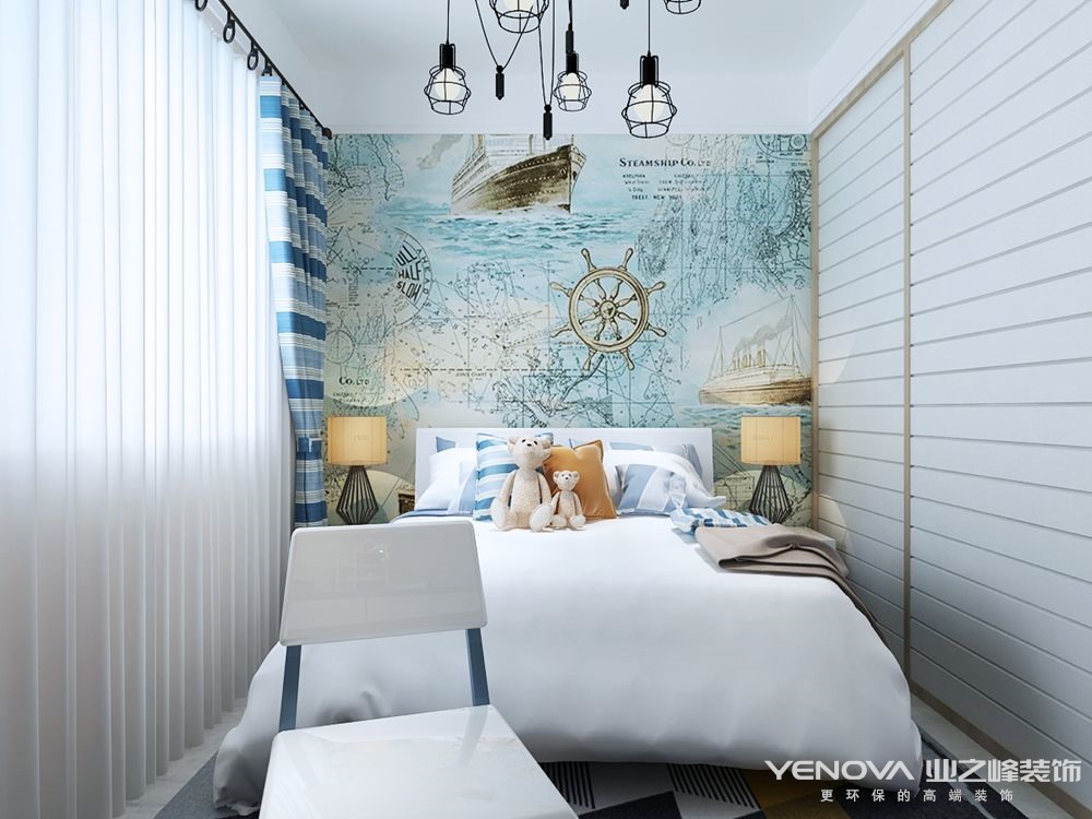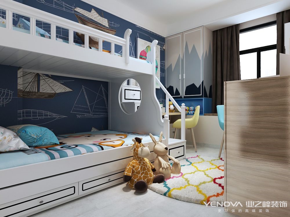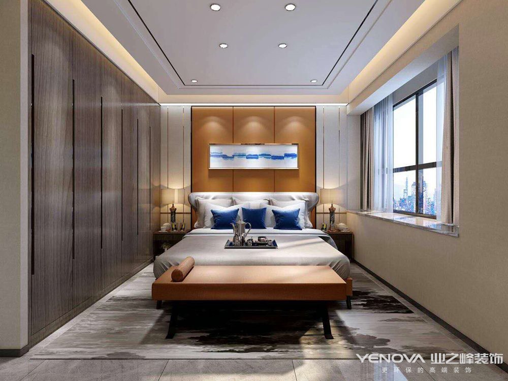 卧室干净明亮,暖色调的设计给幸福的家庭增加温馨感。