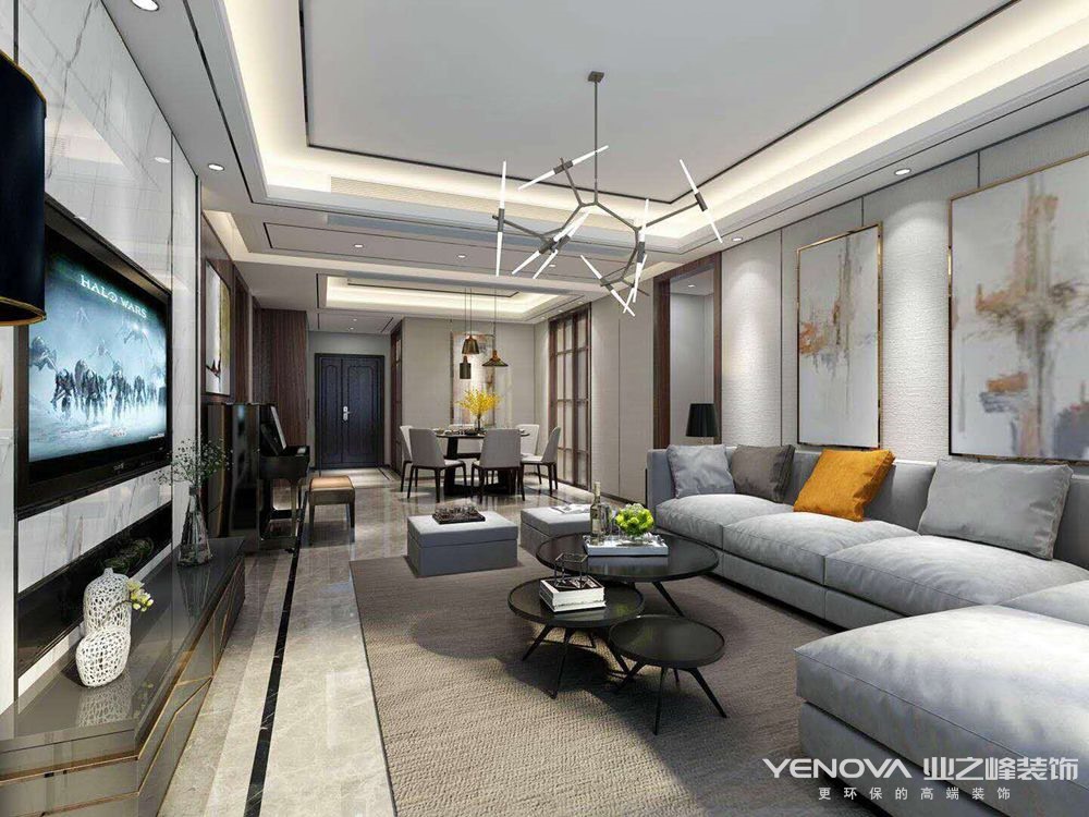 小区:鲁能领秀城 面积:153㎡ 户型:三居 风格:现代简约风格