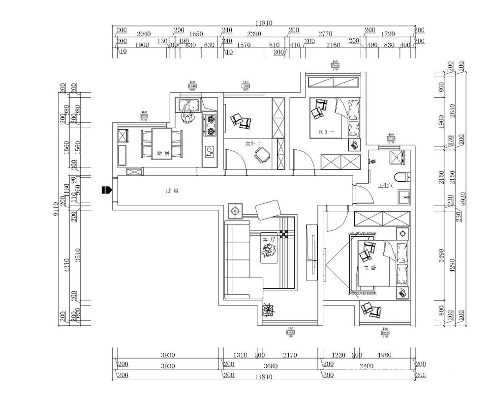 小区:中海紫御东郡 面积:110㎡ 户型:三居 风格:现代简约风格