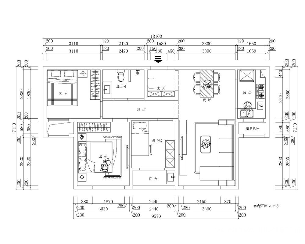 小区:财富中心 面积:100㎡ 户型:三居 风格:现代简约风格