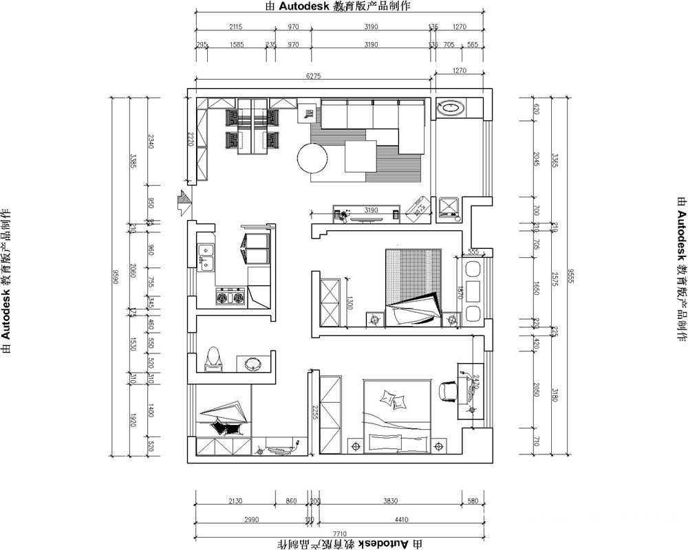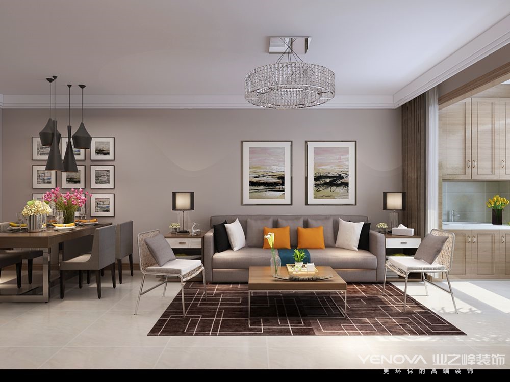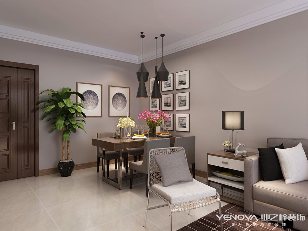 客餐厅,统一的色调及家具,无规则手绘组合画瞬间让餐厅丰富起来