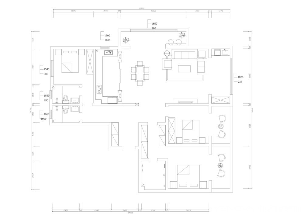 本案设计注重装饰效果,用室内陈设品来增强文脉特色, 运用家具及陈设品来烘托室内环境气氛。深木色、米咖色是此设计的主色调、少量深蓝色糅合,使色彩看起来明亮
