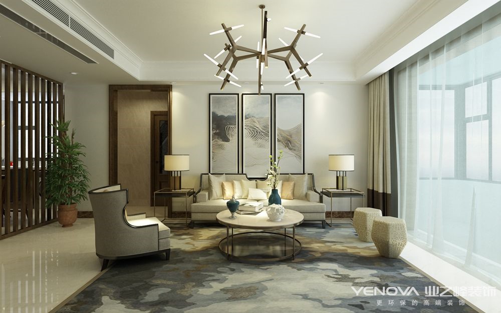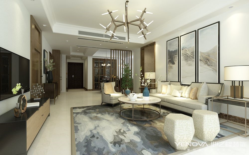 本案中,摒弃了死板的中式造型,相对活泼的金属质感跟布艺的混搭使得家居的更体现出品味与内涵。