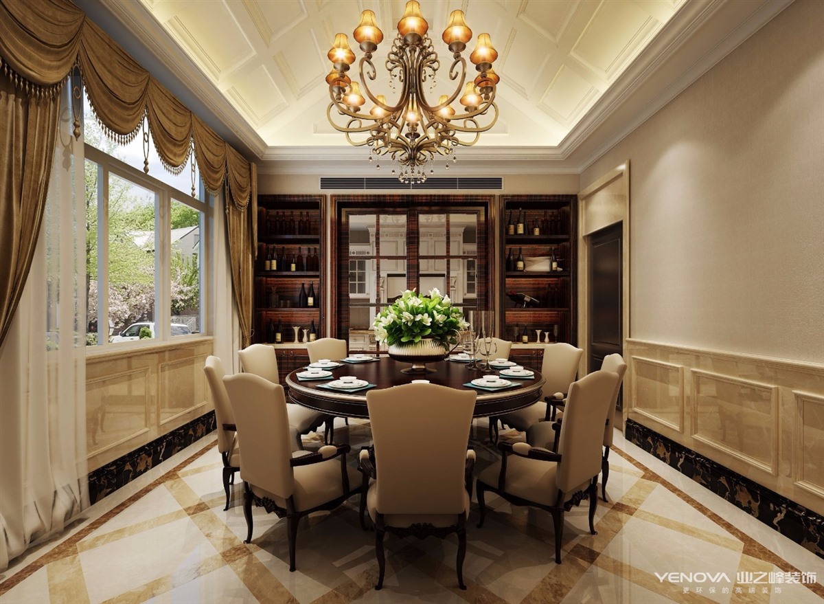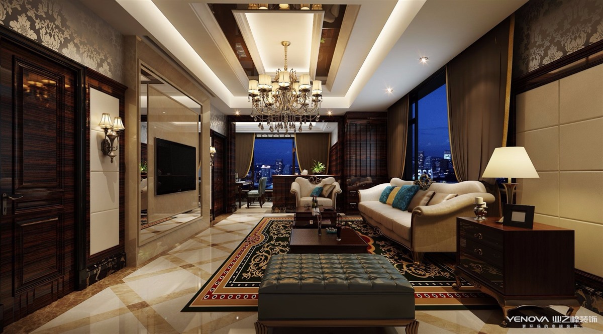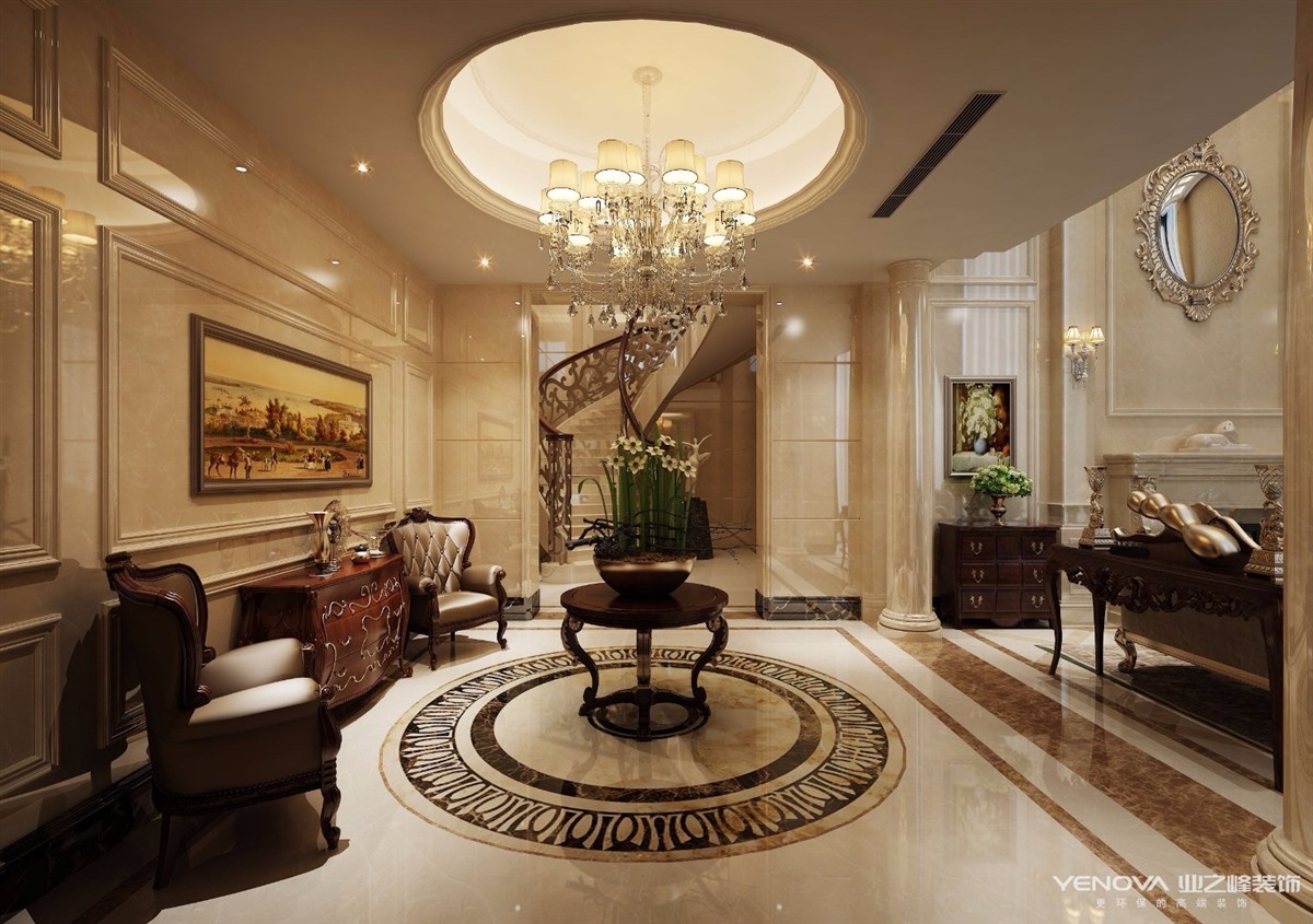 成都业之峰装饰设计案例:本案为欧式风格,有着打通各种流派的界线,形成鲜明的个性化风格的企图心。于是我们看到了罗马式和法式的廊柱,更看到了欧式风格中不可或缺的水晶吊灯、镜面、新古典主义的静物油画等元素,种种这一切,将空间装扮得华彩浓烈又分外妖娆。此外,在一些精心布置的细节上也可以看到欧式古典传统源远流长的积淀;但总体上而言,以灵巧的匠心独具超越了欧式的繁冗和浮华,在主干部分的深色调外,尚有色调呈现出明快爽朗的一面,从而展现出了更加现代时尚的风尚气质,比如在阅读区,书架的形制就在古典中演绎出了现代大都会色彩的格调,显得摇曳多姿却又文脉悠远;在卫生间,设备本身的现代性在这个区间范围内形成独成一统的调性和氛围