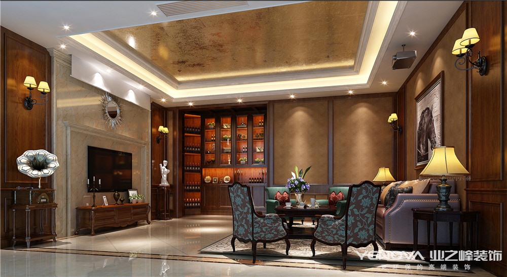 成都业之峰装饰设计案例:本案为现代美式风格,以自然色调为主,纯纸浆质地的单色壁纸,仿旧漆,式样简约的家具,别致的小饰品,现代的抽象油画,一一体现了随意的生活方式。