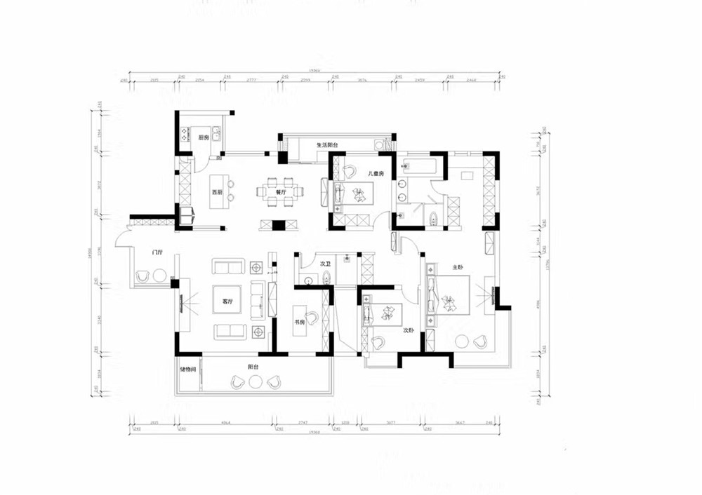 小区:神仙树大院 面积:170㎡ 户型:五居 风格:美式风格
