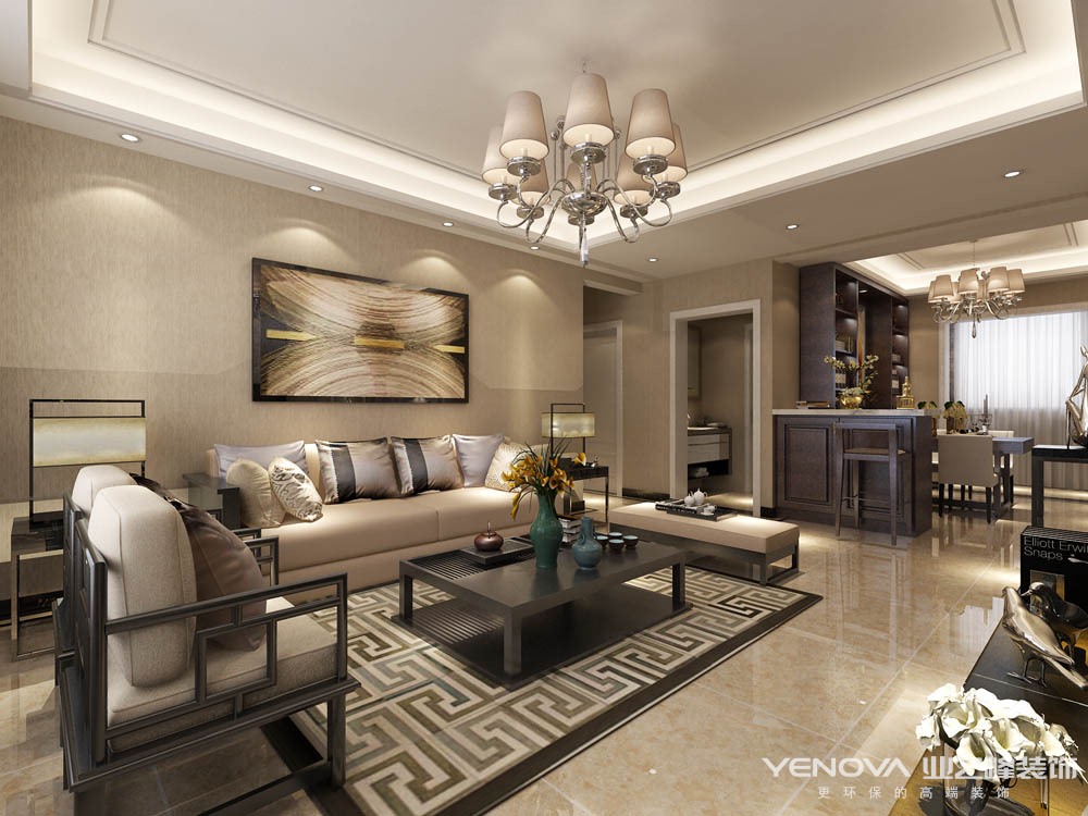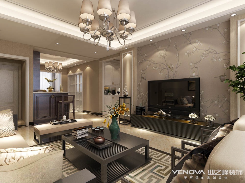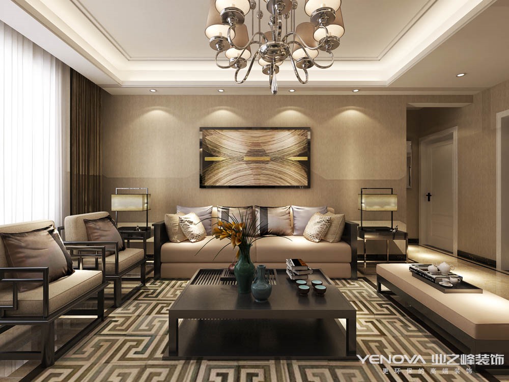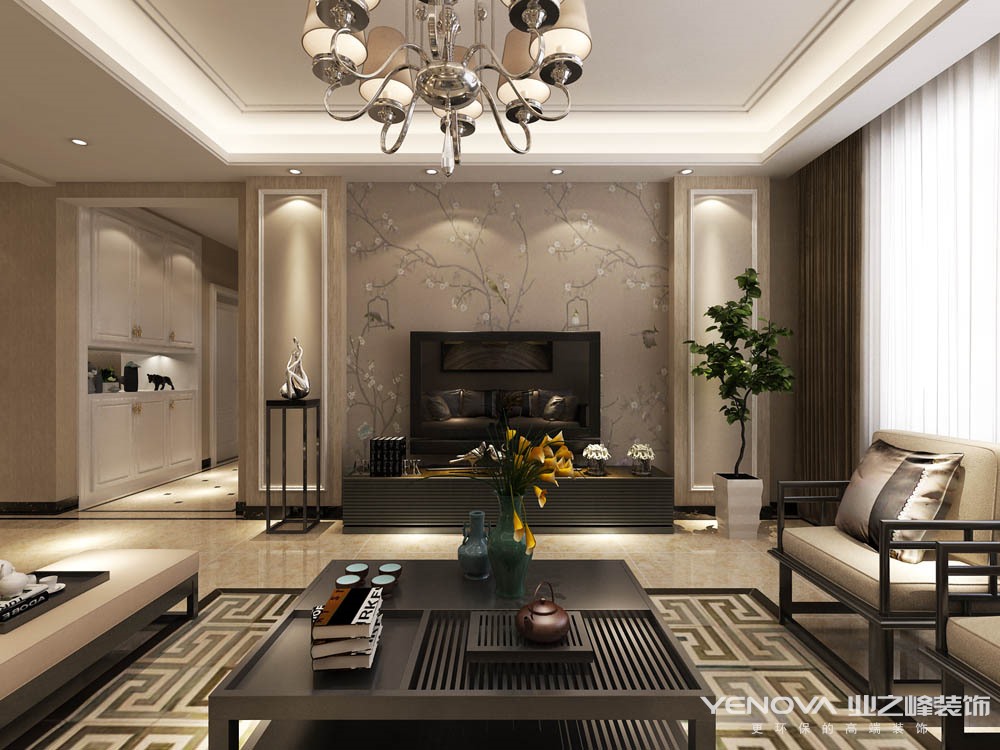 小区:融创中心 面积:126㎡ 户型:三居 风格:新中式风格