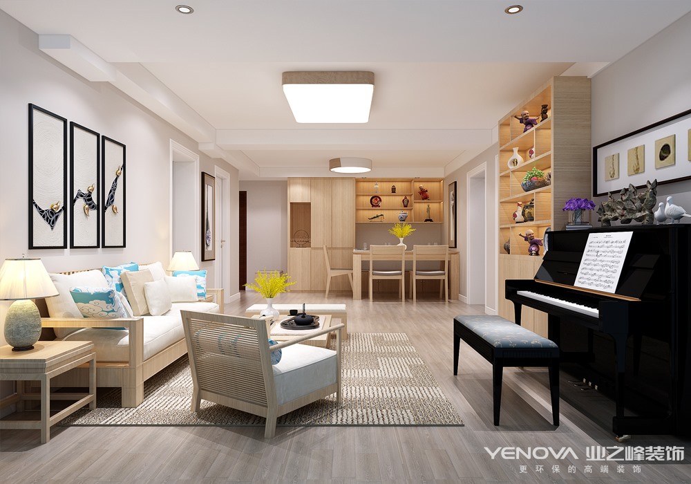 客厅——打破原有客厅形式,不放电视,摆放书架和钢琴,营造美好的起居环境。
