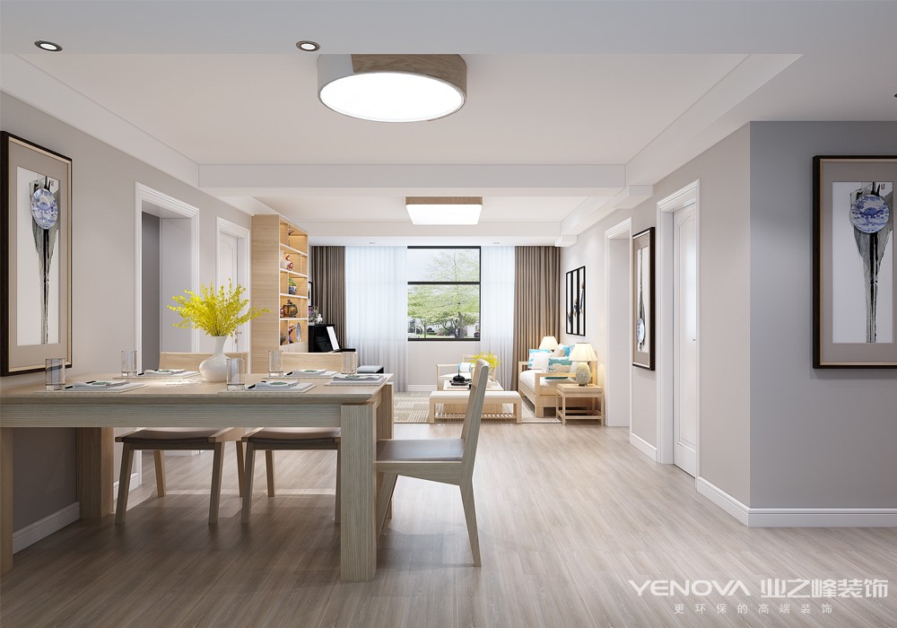 餐厅——餐桌不止是作为用餐的空间,此处预留了网线电源,平时可作为主人工作的书房。