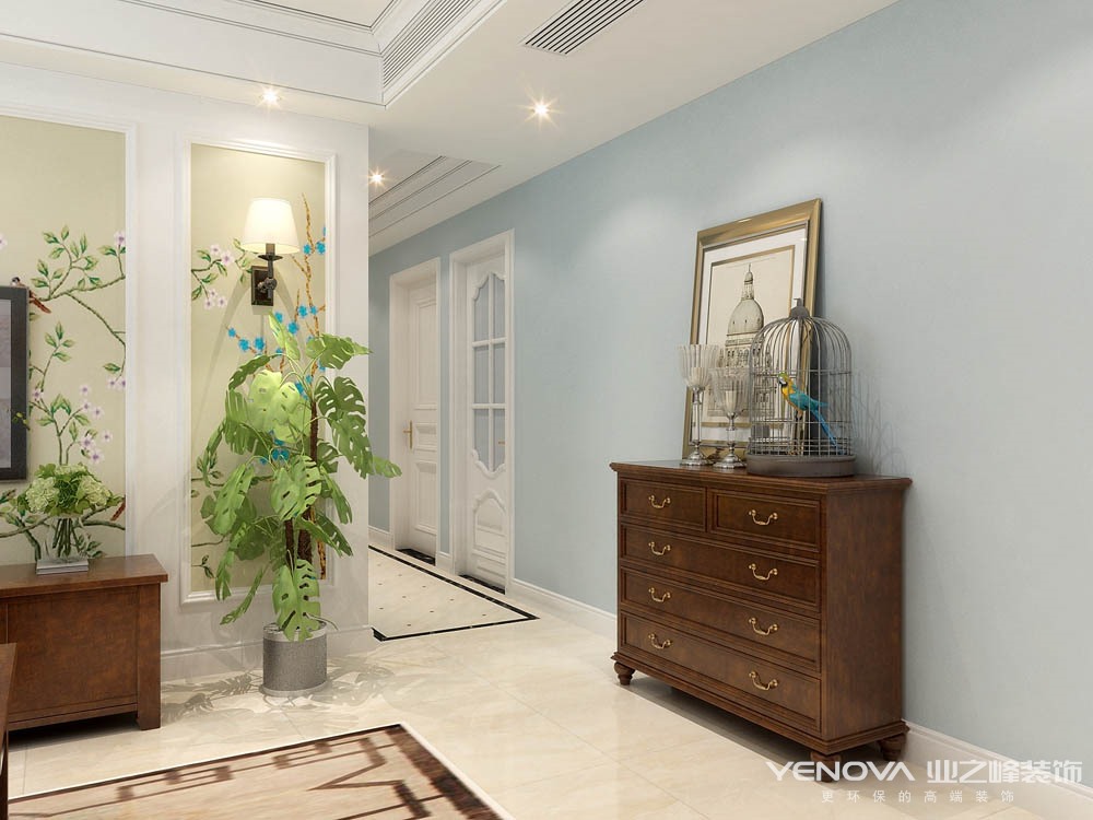 本案的设计风格现代美式,力求表现悠闲,舒适的生活氛围。精美美式风格反映出了屋主人的心情,豪放不羁,安闲洒脱。现代美式风格更是将这个特点发挥到很好,全体计划空间简练明快,色彩光鲜。比方,用很多的石材和木饰面装饰,以木质自身的色彩为主,所谓的“原木色”,使得现代美式风格有着一种天然闲适之感。然后,在原木色的古典风仪中,将自个的共同风格和现代精力联络起来,全部空间呈现出多姿多彩,简练明快的样貌。当然,在现代美式风格的家居装饰,软装饰也不能疏忽,恰到其处的装饰,着实是加分之举。