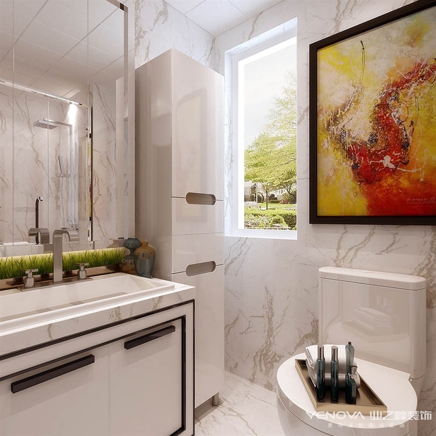 本案的设计风格为现代简约,力求表现悠闲,舒适的生活氛围业主要求现代简约的风格,根据此要求做出了设计。以咖色为主,体现舒适的感觉。辅以浅色的地砖让整个空间色调平衡。现代简约风格饰品是所有家装风格中最不拘一格的一个。一些线条简单,设计独特甚至是极富创意和个性的饰品都可以成为现代简约风格家装中的一员。