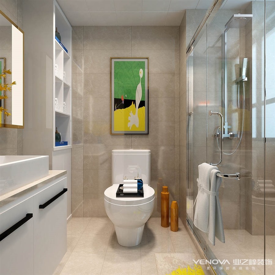 本案的设计风格为现代简约,力求表现悠闲,舒适的生活氛围。业主要求现代简约的风格,根据此要求做出了设计。以咖色为主,体现舒适的感觉。辅以浅色的地砖让整个空间色调平衡。现代简约风格饰品是所有家装风格中最不拘一格的一个。一些线条简单,设计独特甚至是极富创意和个性的饰品都可以成为现代简约风格家装中的一员。
