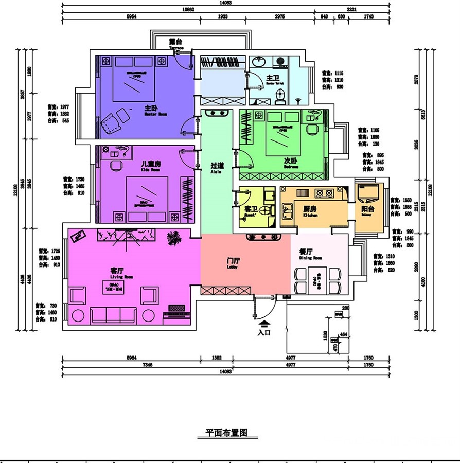 本案是业主是长者,数月在其身上留下了丰富的经验,在方案设计中的客户需求是功能至上。所以针对客户的需求在入户的门厅区域我们设计一组高柜以满足客户人口多而储物空间不足的情况。在每个卧室我们针对客户每位家庭成员的生活习惯与需求定制了不同的高柜来解决储物较多的情况。特别是主卧的定制柜体上我们根据客户爱好在柜体设计上给客户一个展示自己收藏品的地方。然后在满足客户生活功能需求以外,我们在配色选择上卧室以暖色为主色调来营造温馨舒适之感,客厅及公共区域选择以冷色调来营造干净明亮的氛围。