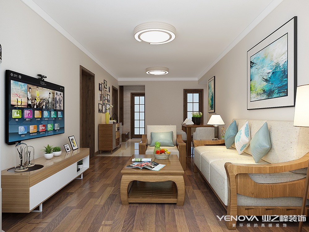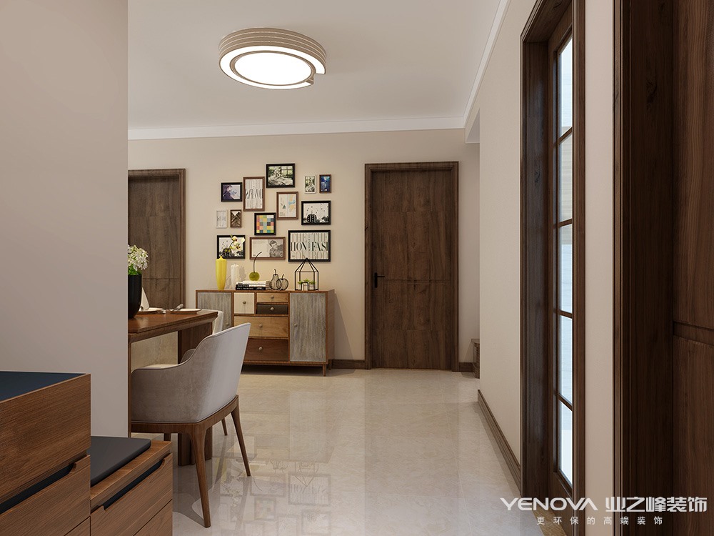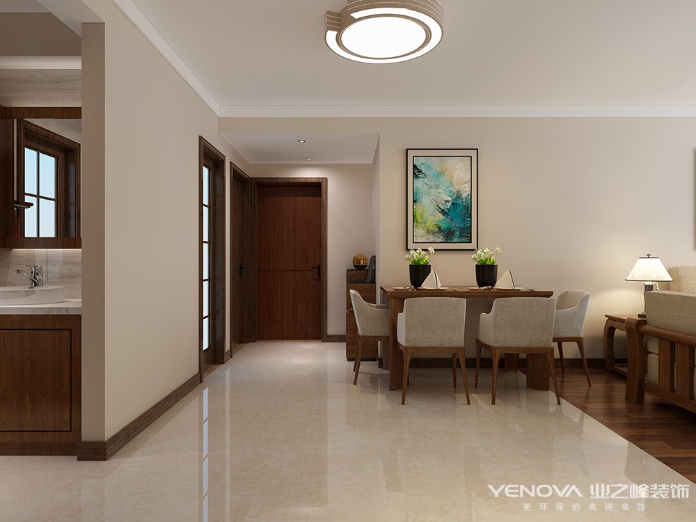 软装陈设选用大面积温润实木,或做旧,或打磨,各种材质在相互碰撞中配以饱和度低、跨度小的色彩,使空间在时光中回溯。依靠色彩和材质的推敲运用,将自然韶华采进居室里。将细腻柔软的家庭感情线串连于整个空间中。