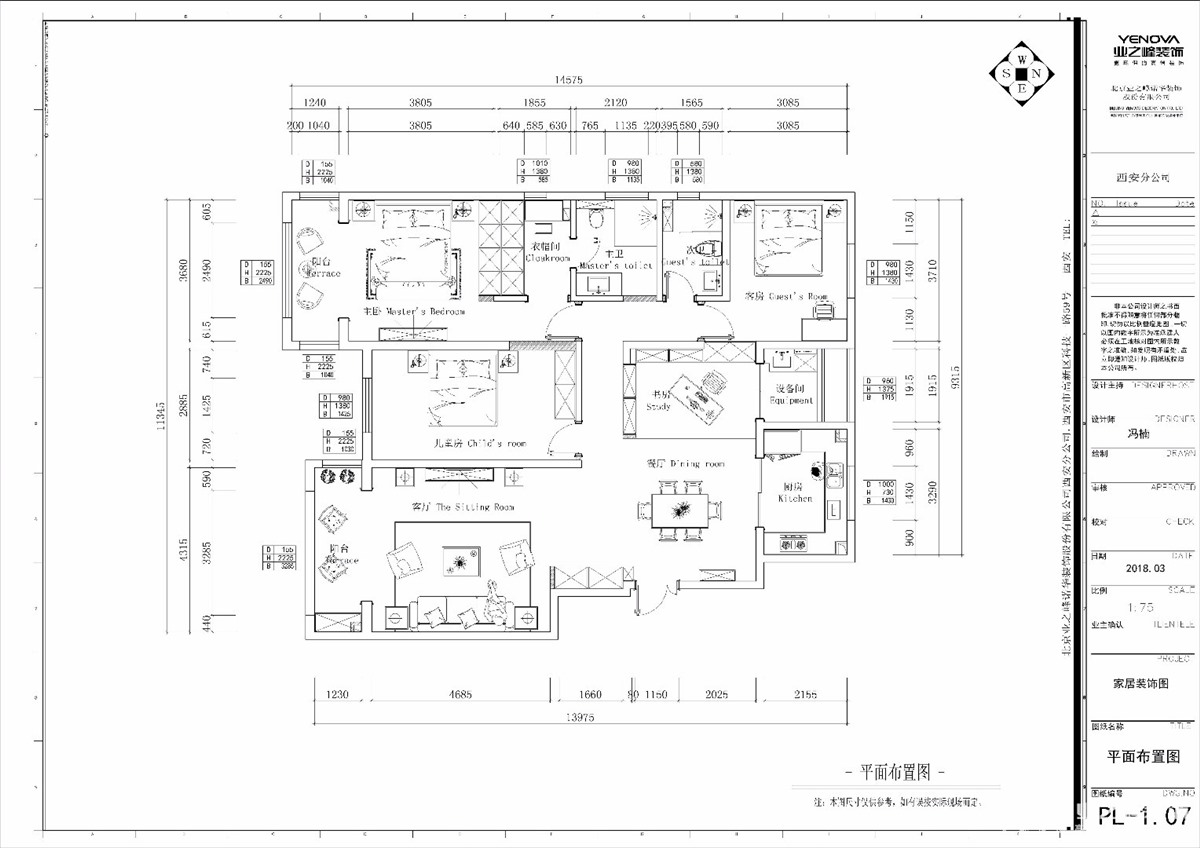 小区:龙湖源著 面积:157㎡ 户型:三居 风格:简欧风格