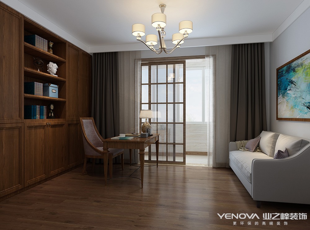 书房大面积的灰色起到了扩大视觉空间的效果,因为它干净纯粹,加入咖色调窗帘。