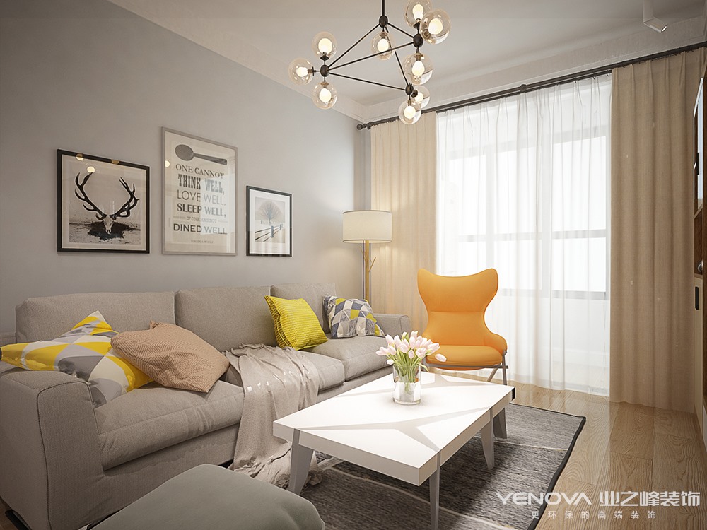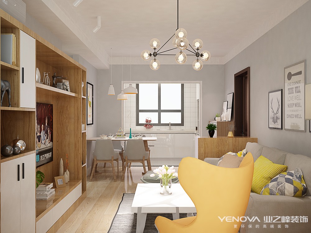 北欧风格简洁大方,既考虑到各个空间的利用,又通过现代风格与北欧风格相结合的色彩造型把室内点缀的具有时尚感,温馨感与实用性。在功能方面,客厅是主人品味的象征,体现了主人品格,地位,也是交友娱乐的场合,沙发背景墙只做了简单的处理,做了一个悬挂的台面,上面可以放装饰画等,一些装饰品非常实用。餐厅是家居生活的心脏,不仅要美观,更重要的实用性,整体性。餐厅的灯光很重要既不能太强又不能太弱,灯光则以温馨和暖的黄色为基调,顶部做了简单的吊顶。简洁和实用是现代简约风格的基本特点。加上传统的中式风格让人感觉舒适和恬静,适度的装饰是家居不缺乏时代气息,使人在在空间得到精神和身体的放松,并紧跟着时尚的步伐,也满足的现代人‘混搭’的乐趣,让家的感觉充满温馨