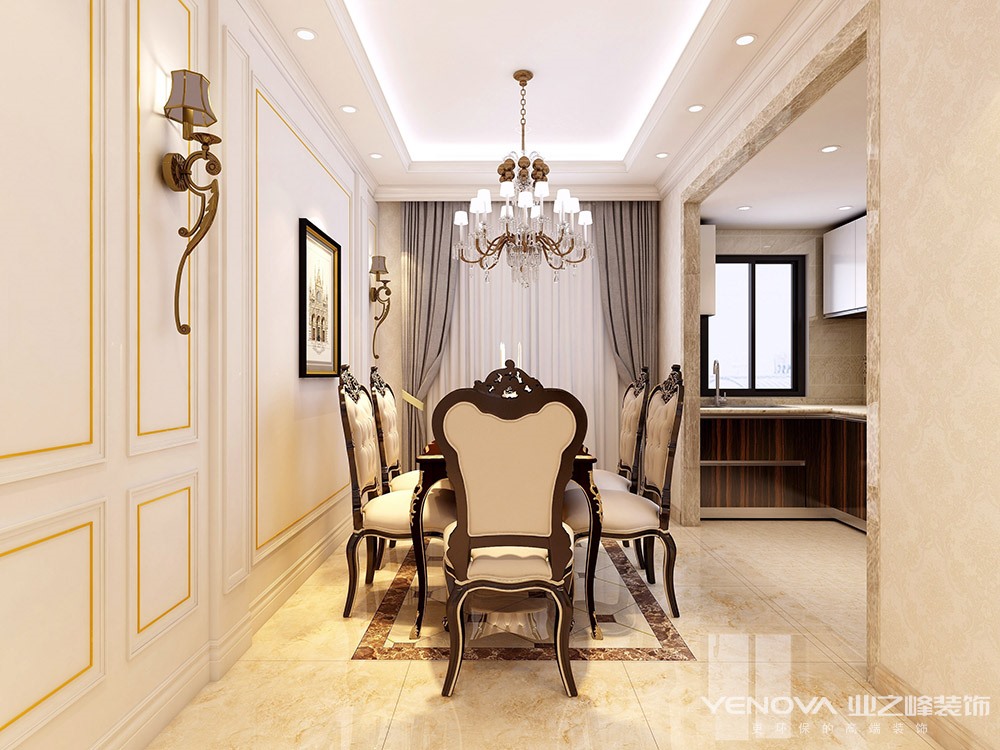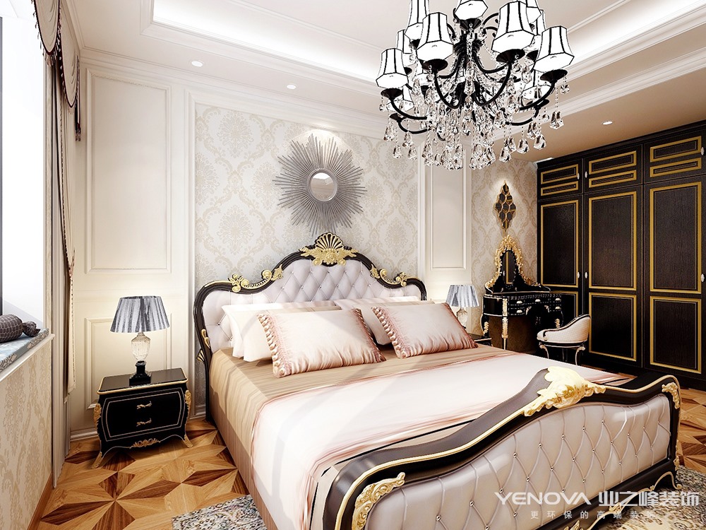 自然的花纹及装饰让空间柔美、雅致,遒劲而富于节奏感。顶面以简约的线条代替复杂的欧式花纹,以明快清新的白色家具与黑色线条色展现奢华与美,又能体现现代生活的舒适感。
