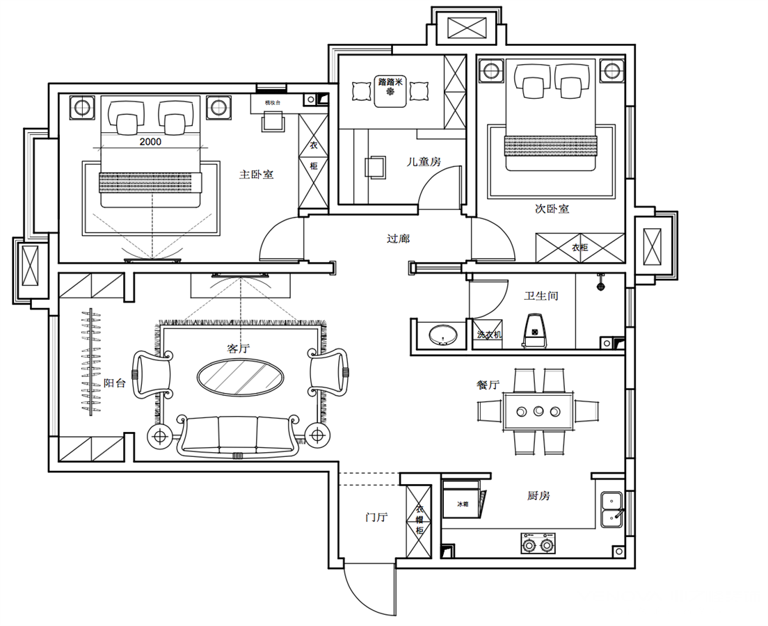 小区:融侨观澜 面积:132㎡ 户型:三居 风格:欧式风格