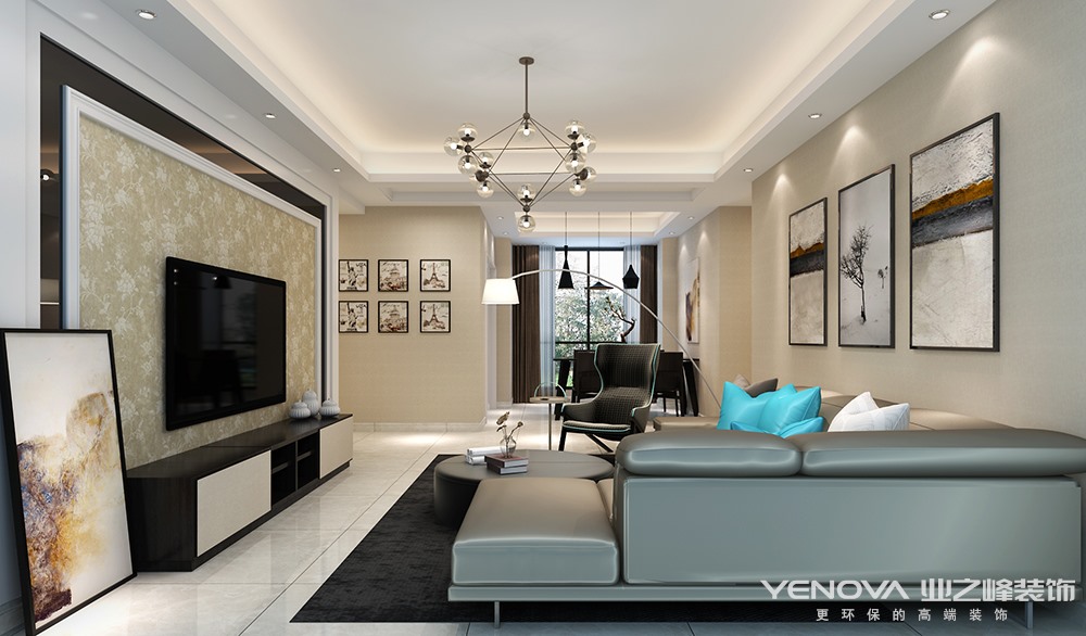 本案是一个117平方的3房2厅,业主90后的年轻人。喜欢现代风格,业主喜欢简洁好弄卫生。在设计重点上空间的实用性,色彩搭配上以黑白灰色为主,由于业主是年轻在后期灯光上以暖色为主,在客厅和餐厅吊顶上保留原有的高度,用石膏线的来弱化梁体结构的,让顶面更有层次感。