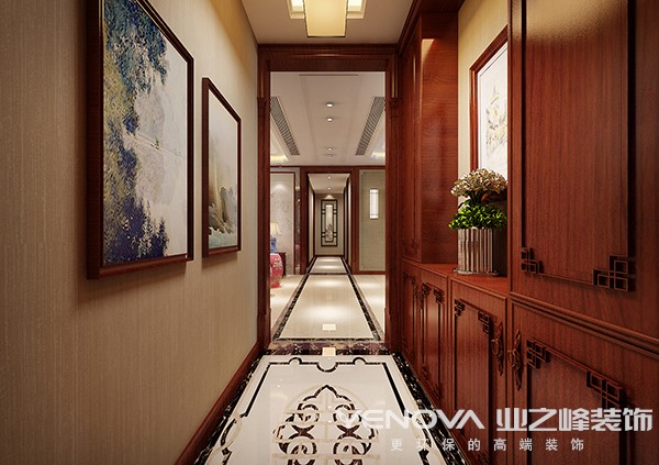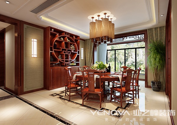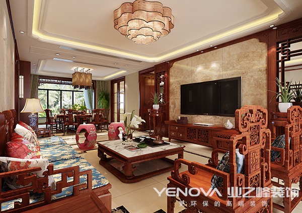 中式风格非常讲究空间的层次感,在需要隔绝视线的地方,则使用中式的屏风或窗棂、中式木门、工艺隔断、简约化的中式“博古架”,通过这种新的分隔方式,单元式住宅就展现出中式家居的层次之美。再以一些简约的造型为基础,添加了中式元素,使整体空间感觉更加丰富,大而不空、厚而不重,有格调又不显压抑。客厅是传统与现代居室风格的碰撞,设计师以现代的装饰手法和家具,结合古典中式的装饰元素,来呈现亦古亦今的空间氛围。中式风格的古色古香与现代风格的简单素雅自然衔接,使生活的实用性和对传统文化的追求同时得到了满足。