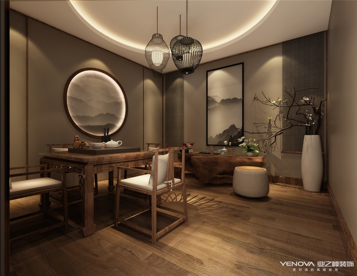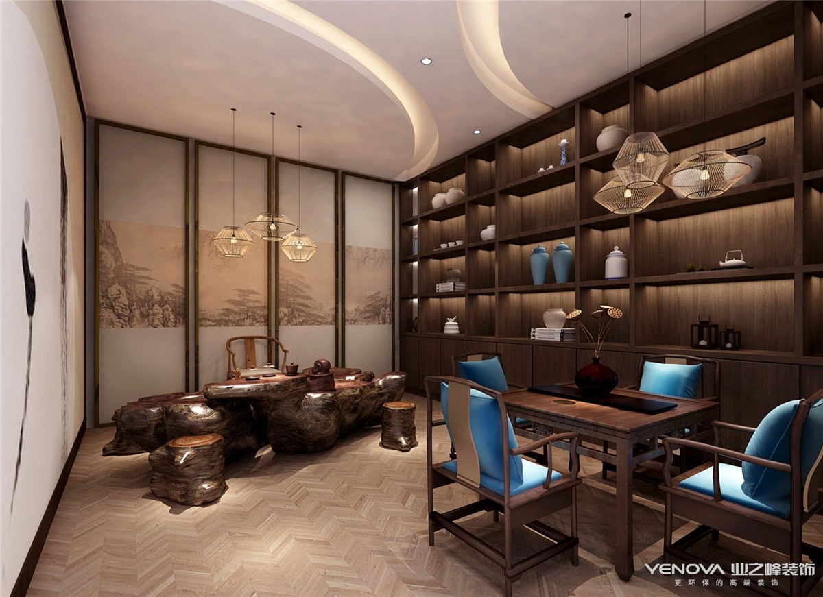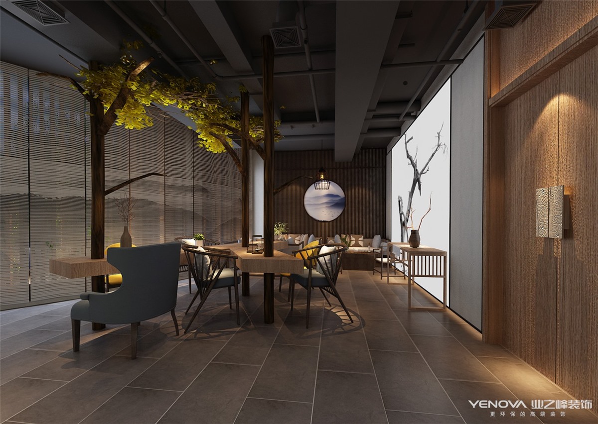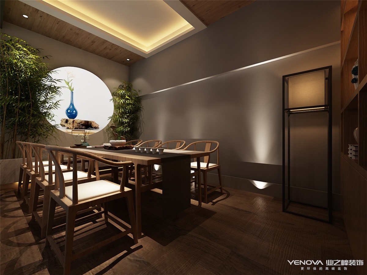 茶室可以满足人们审美欣赏、社会交流、养生保健等高层次的精神需要。在设计时,营造富有茶文化的艺术氛围,微风、养眼的绿、质朴的木,让人们能在品茗的过程中体会到一种全身心放松,体验到心灵的净化与宁静,同时也渲染茶性清纯、幽雅的气质。