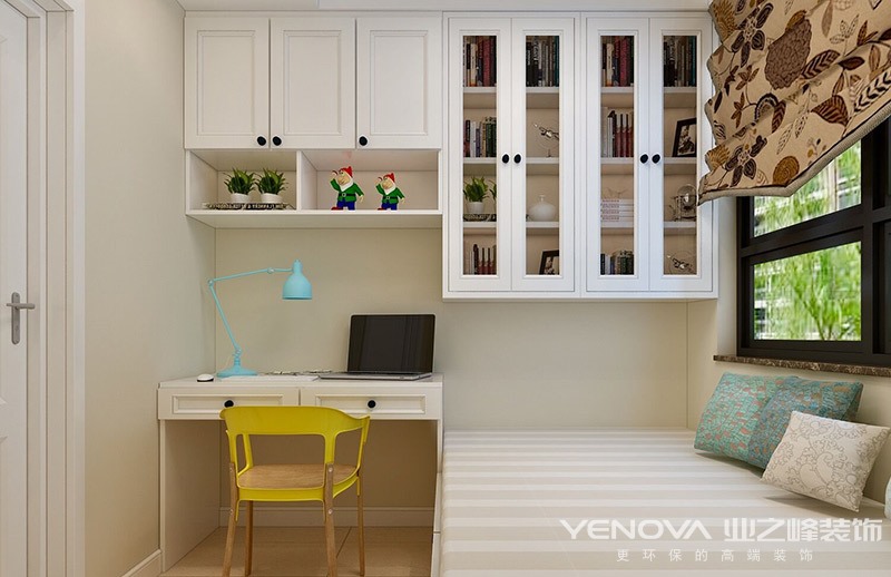 客厅采用轻美式风格,比起传统美式的厚重与沉稳更明亮、更轻盈、更随意、更有活力。抛弃了传统美式的严肃和深沉,留下了自由、舒展。以黄色为基调,带来了明亮、清新的视觉享受。搭配棉麻材质的沙发及原木色系的实木家居,透露出质朴、自然的气息。颜色鲜艳的抱枕作为客厅的强调色,为空间注入了活力。