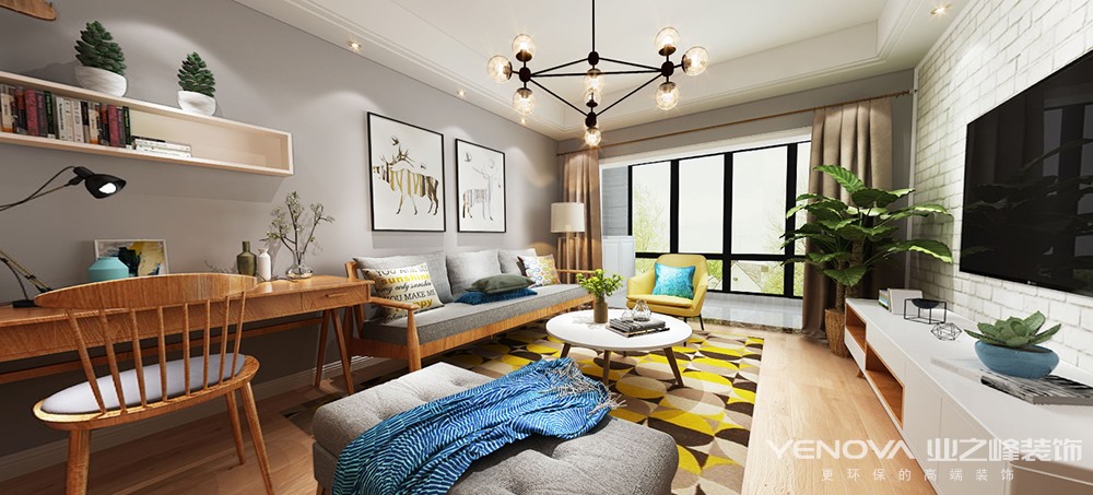 小区:皇冠国际 面积:97㎡ 户型:三居 风格:北欧风格