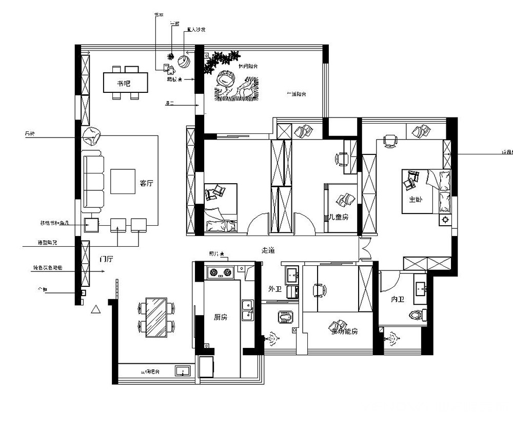 小区:竑鼎福第 面积:170㎡ 户型:四居 风格:北欧风格