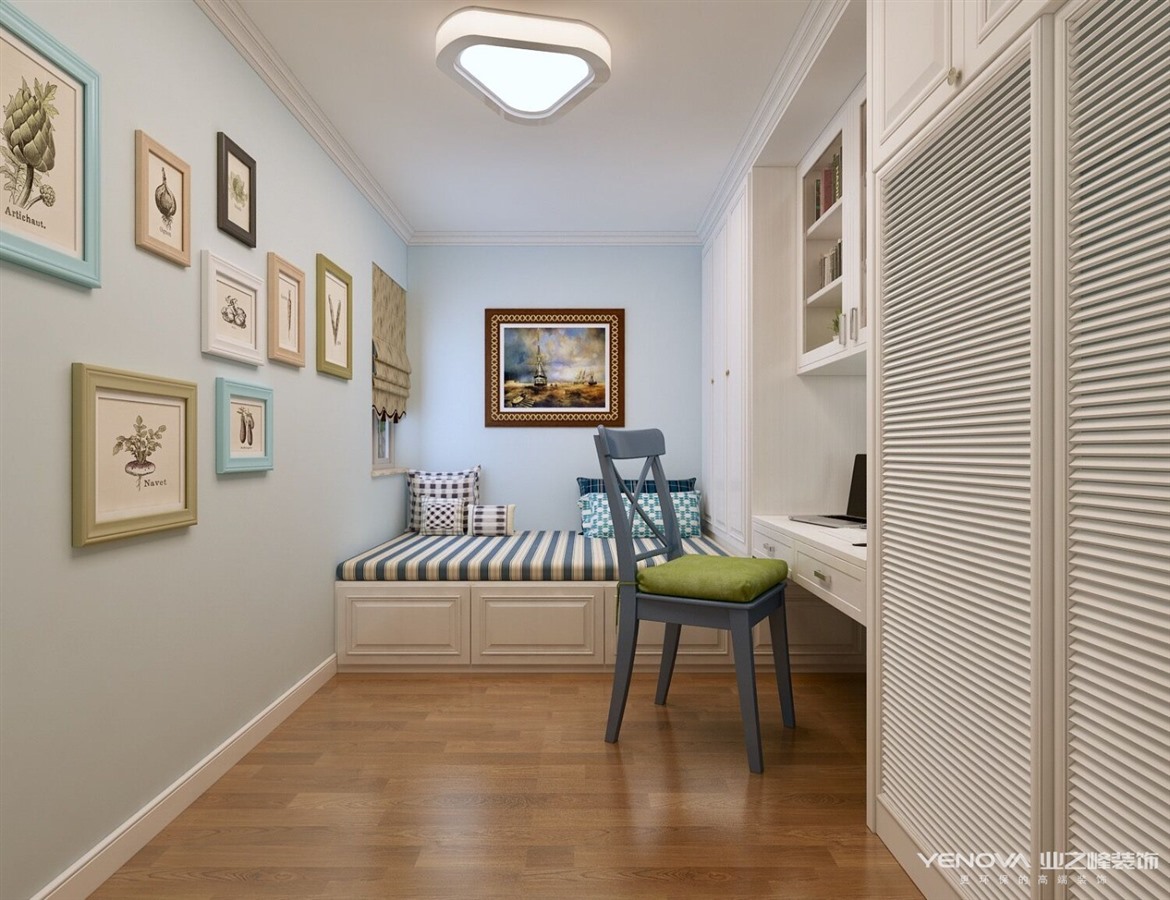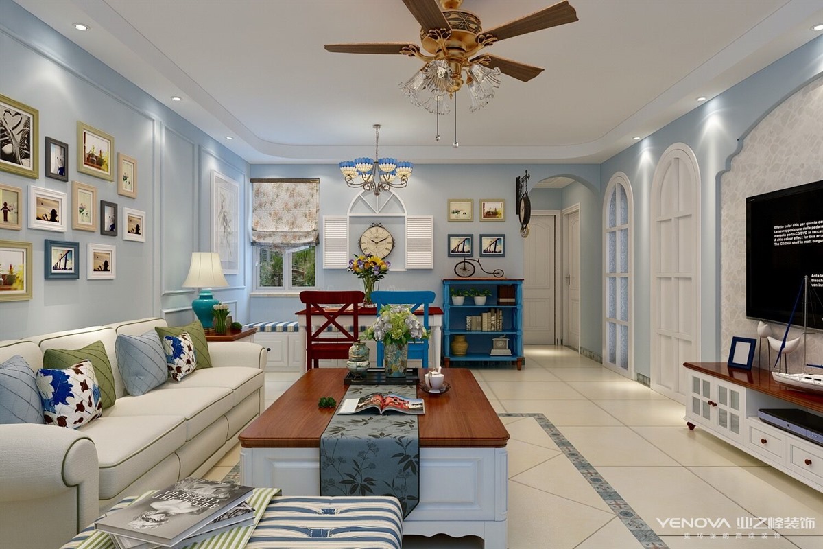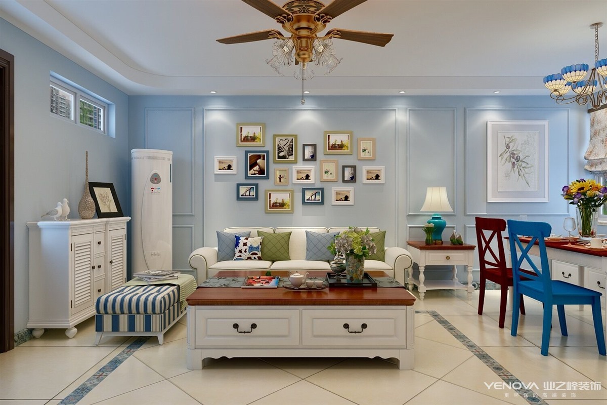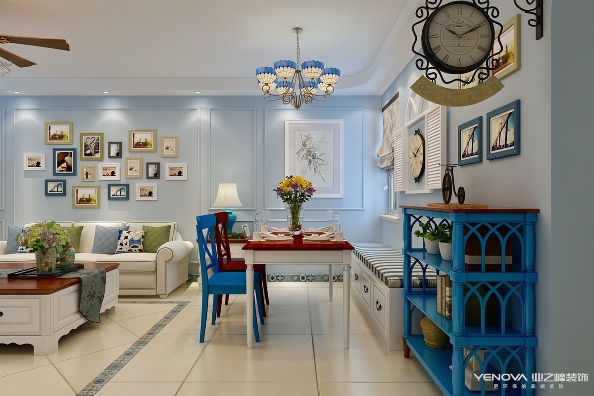 本案是一对年轻夫妻的住所,因在国外留学多年,喜欢地中海风格,蓝色的乳胶漆,搭配照片墙,仿佛生活在浪漫的地中海,回归自然。