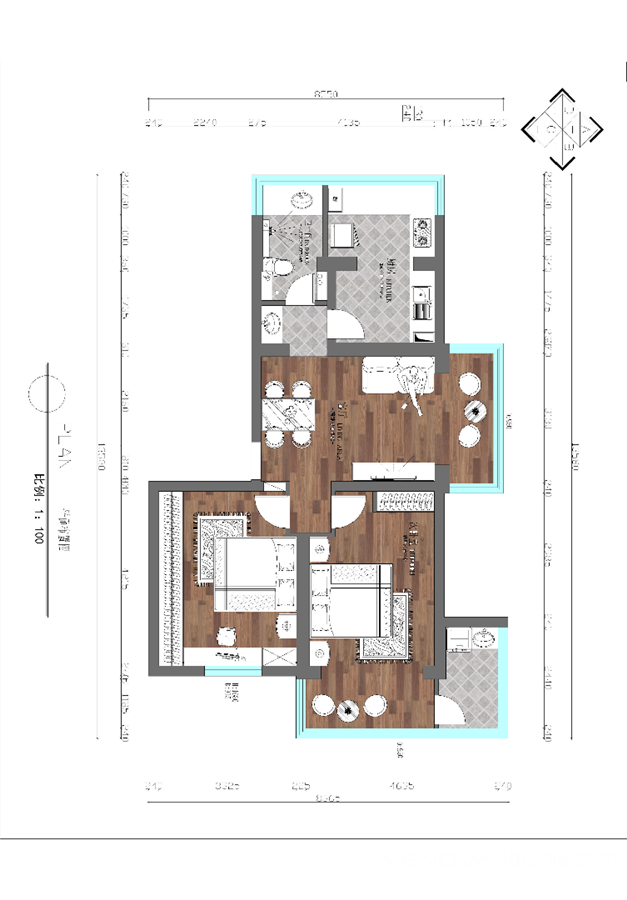 小区:省工行宿舍 面积:70㎡ 户型:二居 风格:新中式风格