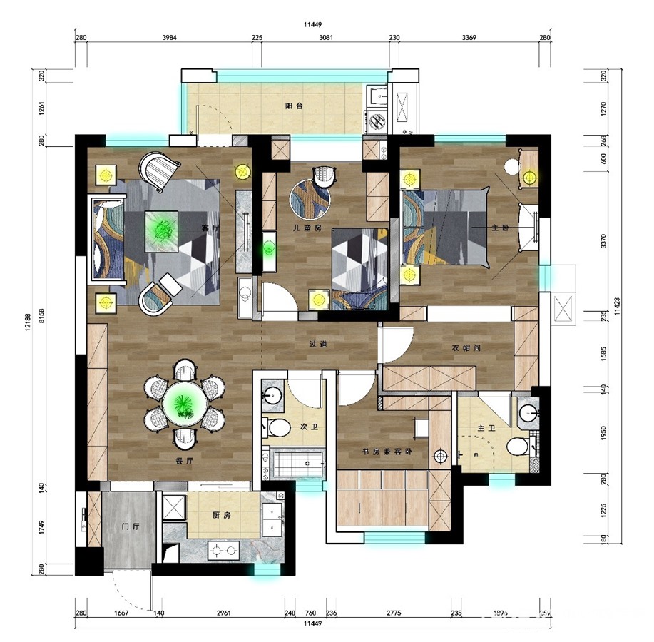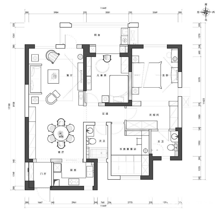 小区:复地东湖国际 面积:120㎡ 户型:三居 风格: