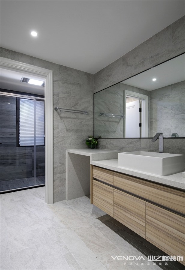 主要材料:木纹砖、绒布硬包、黑色不锈钢