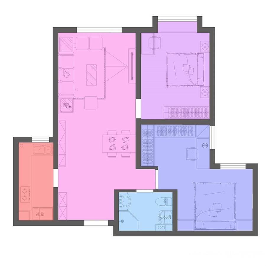 小区:融创中心 面积:90㎡ 户型:二居 风格:现代简约风格