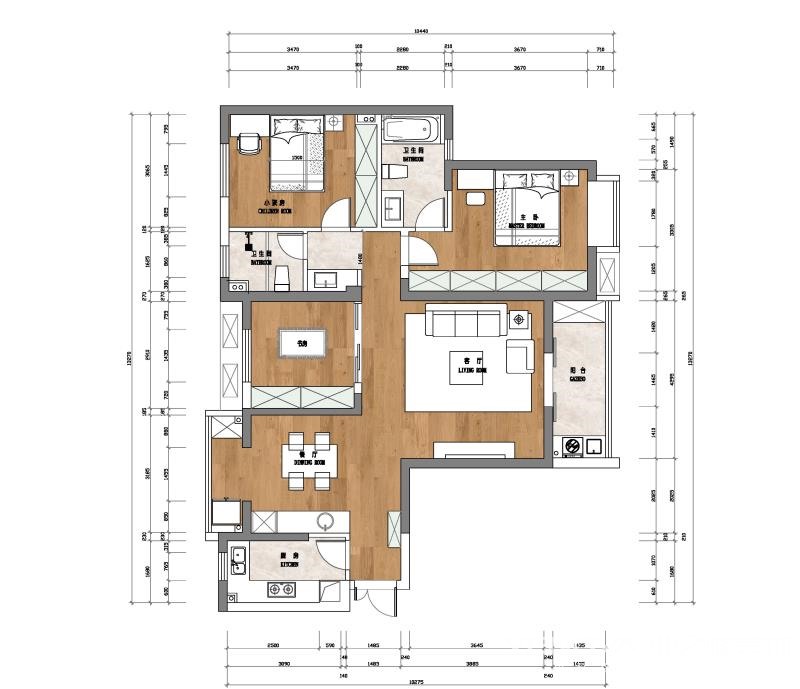 进来,改变主卫生间结构的同时也增大了小孩房的空间,一举两得