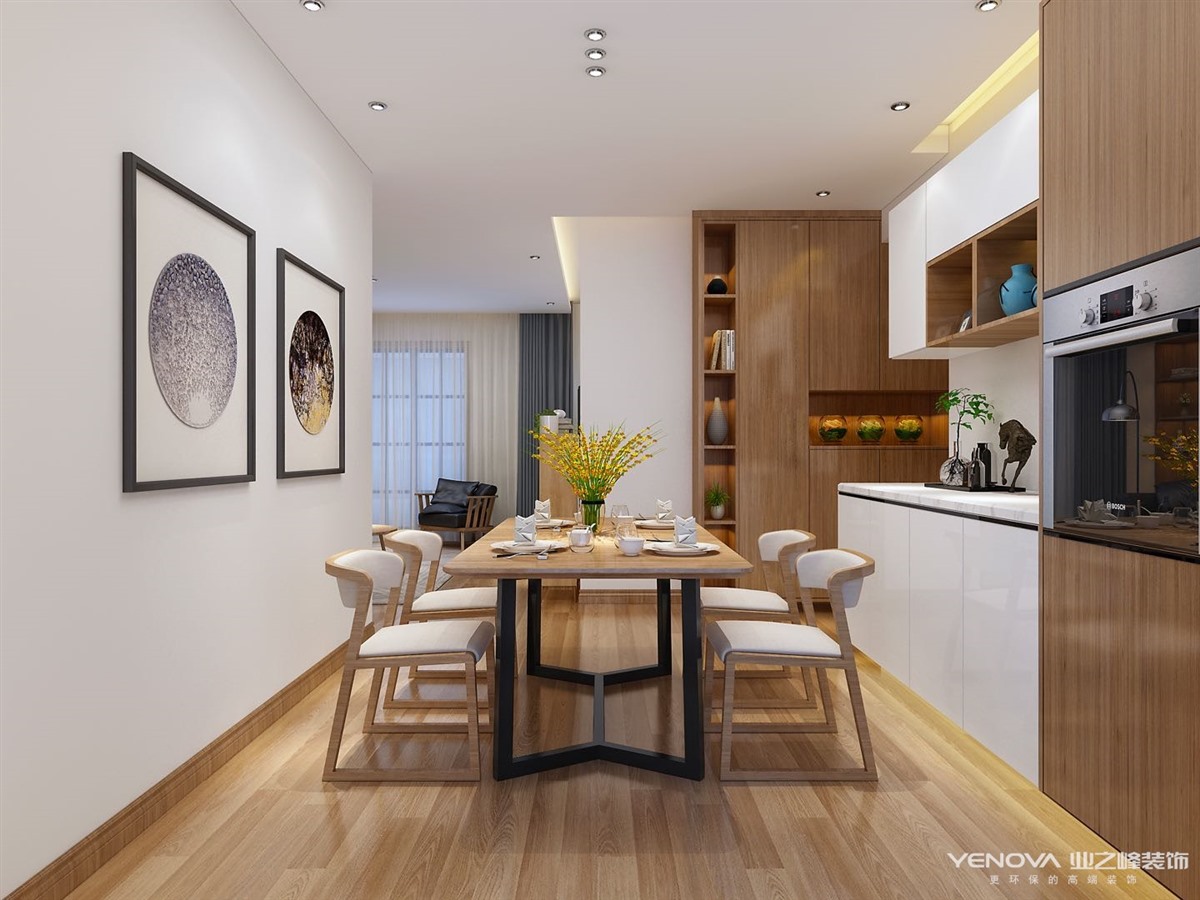 厨房的进门方向,在餐厅区域增加了西厨,同时把北阳台也利用了