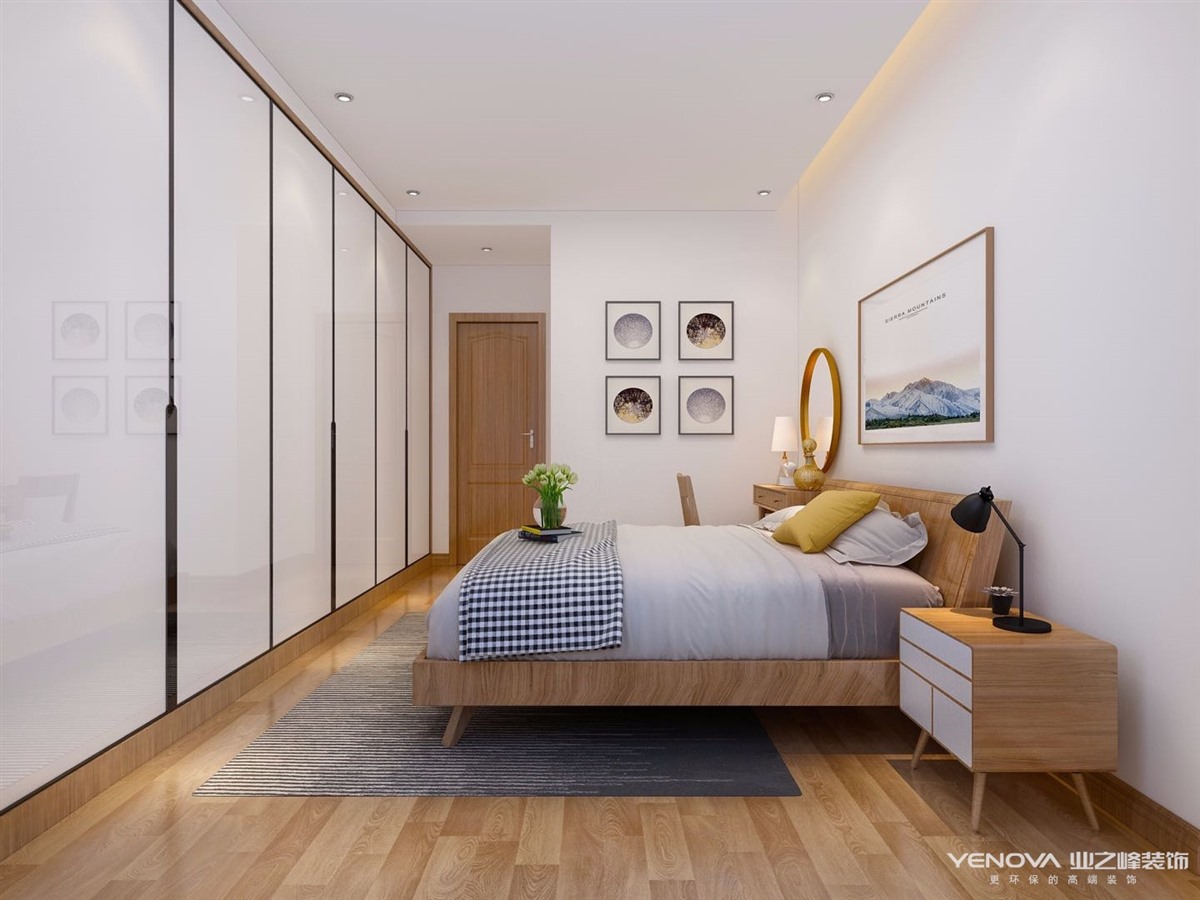 同时也大大增加了两个房间的储藏功能。墙面部分大面积留白,后期软装利用天然的棉麻.素帘.皮革.原木的混合搭配,由浅入深的表达出独特的自然之美!