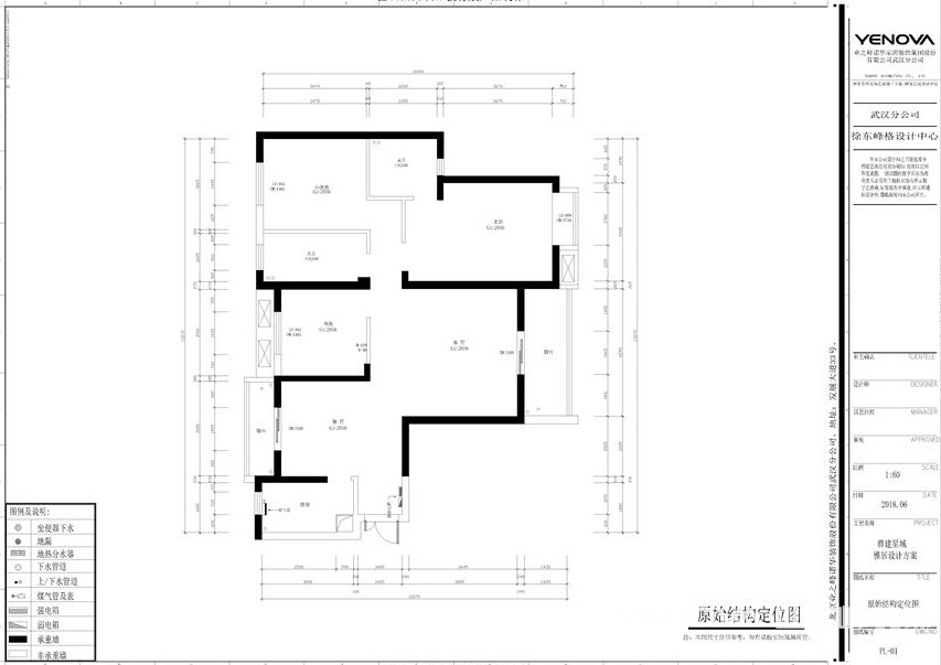 本案为三房两厅的结构, 实地勘测后发现原户型布局非常不理
