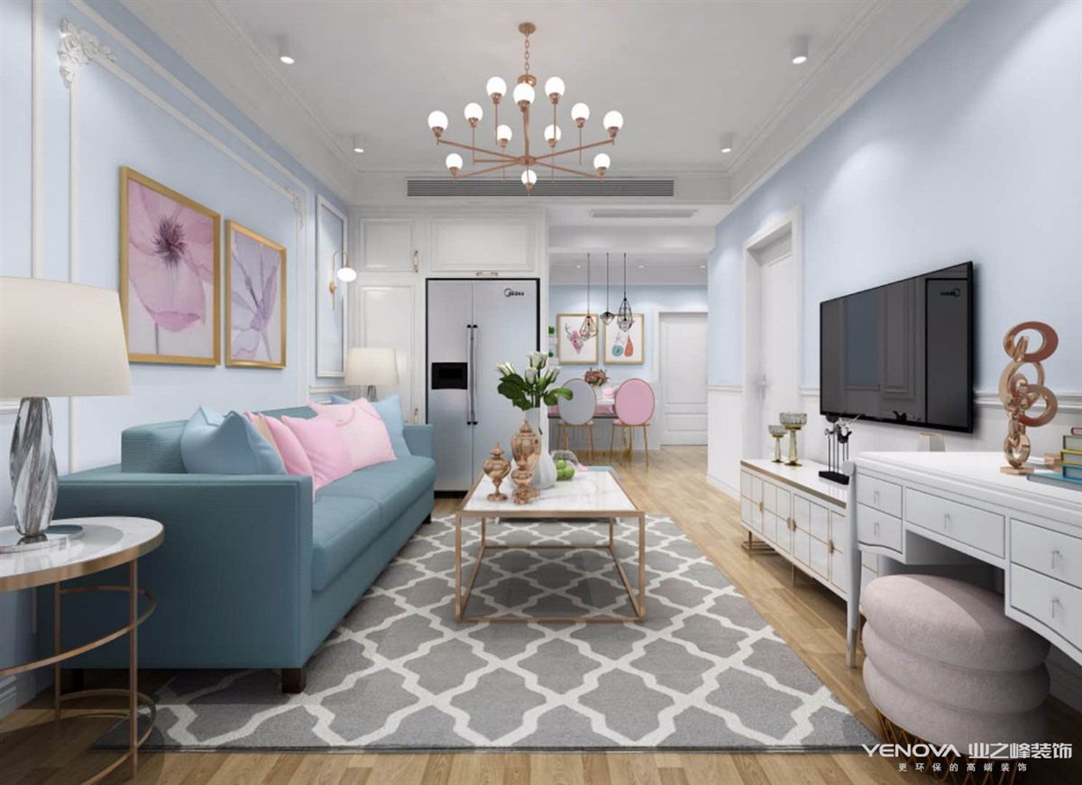 这是一个两室两厅一厨一卫的户型,客户是一对年轻夫妇再加上一个女儿,本身户型偏小,储藏空间较少,所以在平面设计的时候多考虑储藏功能,男业主以前在日企上班,比较注重细节,在风格定位的时候也是比较犹豫,开始定位的是现代风格,然后考虑到女孩比较喜欢粉粉嫩嫩的,就选择了简美风格,给女儿营造一种温馨舒适的环境,