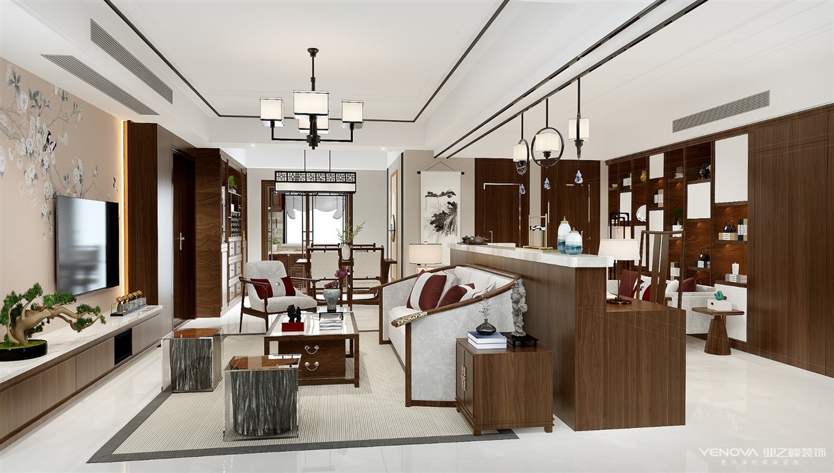 新中式风格是以中国古典文化作为背景的,营造的是极富中国浪漫情调的生活空间,红木、青花瓷、紫砂茶壶以及一些工艺品都体现了浓郁的东方之美。
