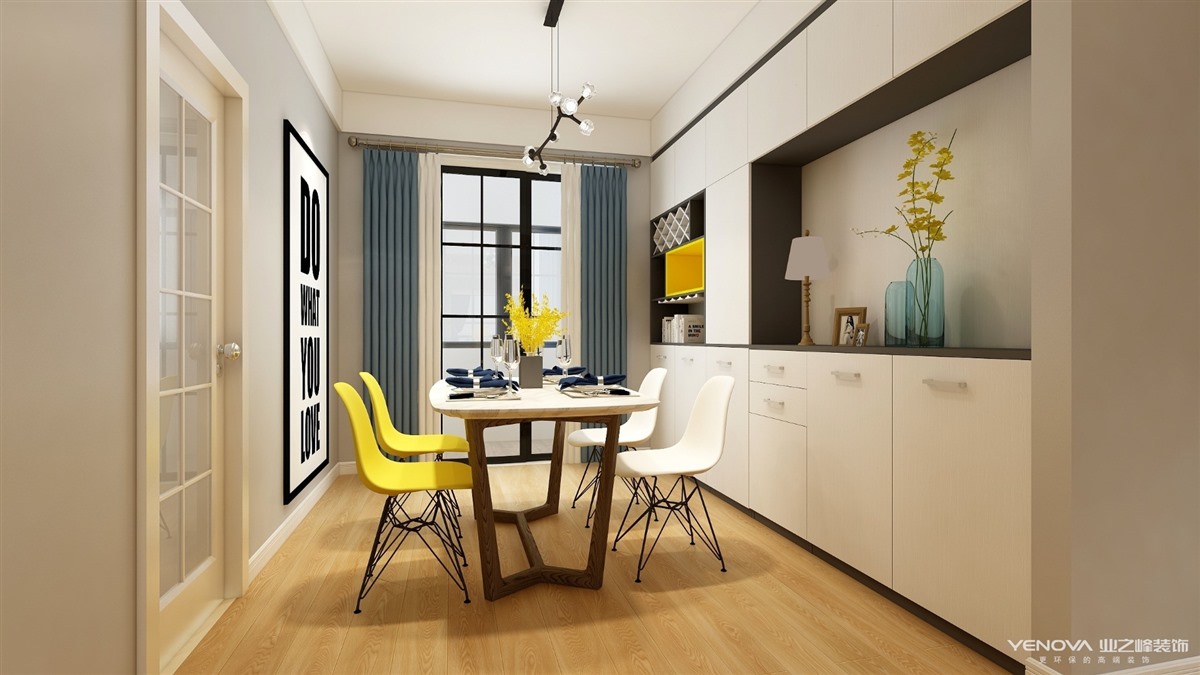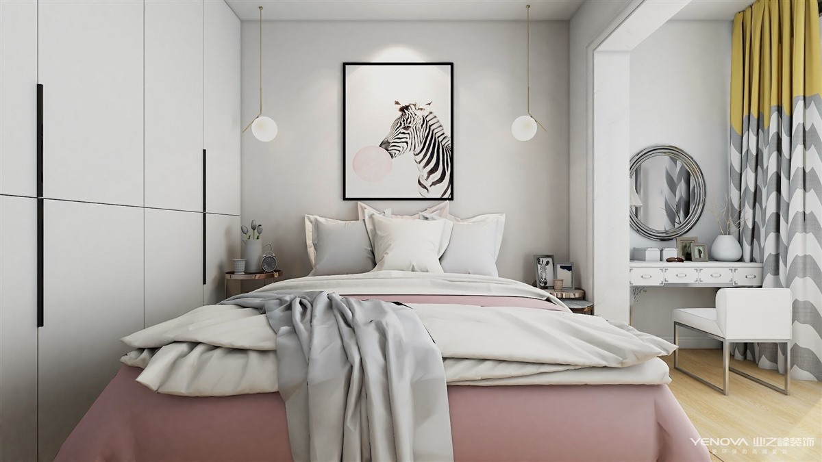 在和客户沟通时也是直奔主题,告知喜欢当下流行的北欧风格及高级灰,但是又担心灰色会不会让整个家里暗沉显得压抑。所以我们就根据客户需求在效果表现入手针对客户喜好而设计。首先客餐厅在硬装方面运用高级灰、乳胶漆、简易叠级吊顶及柜体突出整体效果。墙面运用大面积浅色系高级灰避免颜色过深导致暗沉,再通过白色顶面及叠级吊顶烘托出空间层次感,而客餐厅的设计亮点表现在客餐厅柜体上,通过黑白柜体及黄色装饰柜体框架使色彩丰富,再运用黄色点亮空间,硬装部分效果就凸现而出。主卧空间设计初衷就是在于给客户一个轻松舒适的休息环境,所以没有过多复杂设计给人一明了大气空间,结构上拆除主卧阳台门扩大主卧空间增加休闲设备,而主卧设计亮点则体现在软装搭配上。通过柔和暖色调烘托氛围,再以配饰及整体式衣柜设计突显高级感整体效果一目了然。整体设计带给居家生活者一种闲适,轻松自由的体验!