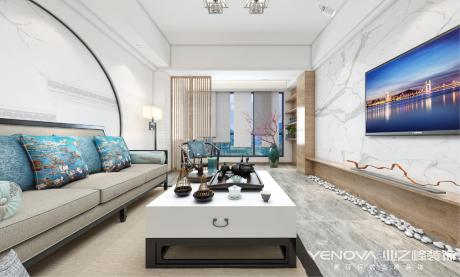 小区:金沙泊岸 面积:100㎡ 户型:二居 风格:新中式风格