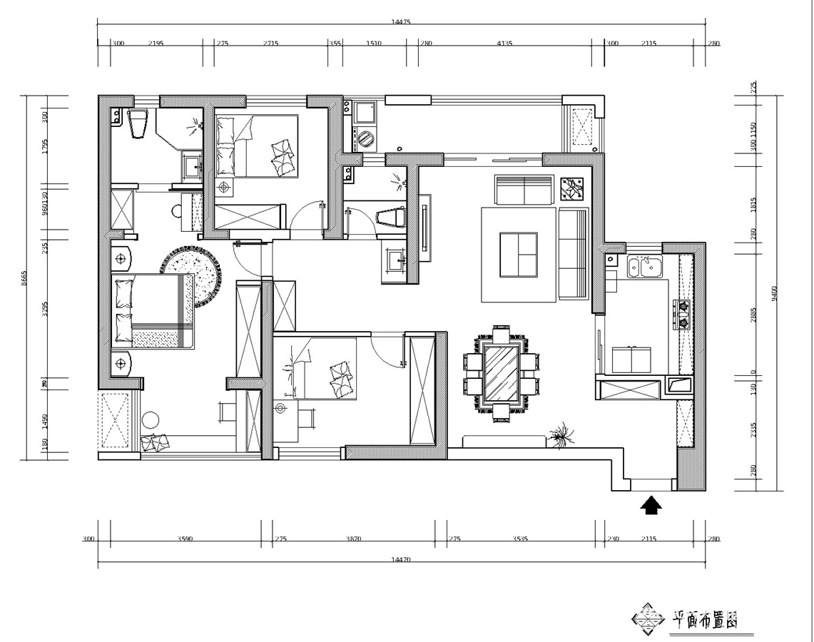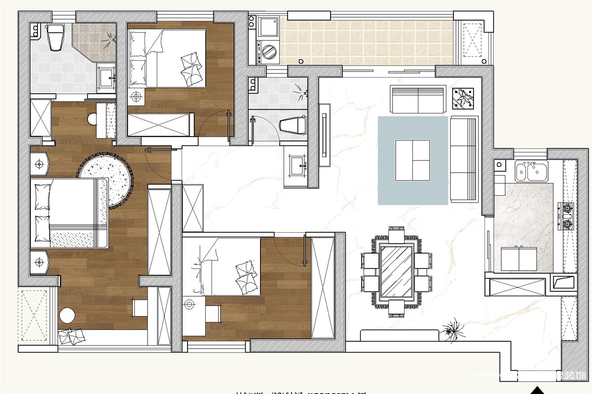 小区:福星惠誉汉阳城 面积:134㎡ 户型:三居 风格: