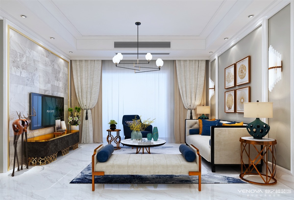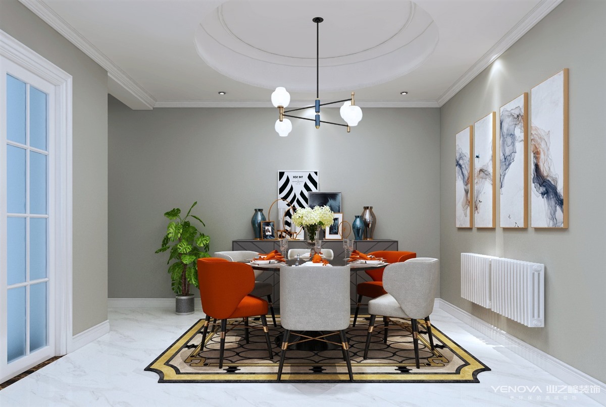 本案位置位于拦江路地铁口,交通十分便利,总楼层较高,视野十分开阔。业主是一对中年夫妻,由于比较青睐一些国外的设计元素,在这里综合她们的喜好,给他们定位了这几年很流行的轻奢风格。原始户型入户就是一个门厅,正面和侧面利沿墙体做了鞋柜和换鞋区挂衣区形成入户门厅,既能让入户门厅成为一个亮点又能充分利用储物空间。客餐厅利用吊顶做出区域划分,餐厅对应圆桌做了圆顶,更能体现美好的寓意和大气。简单的沙发,线条简约流畅,玻璃餐桌和金属支脚的餐椅,造型简单时尚,再搭配孔金属质感的吊灯,时尚华丽的轻感不言而喻,客餐厅墙面使用米灰色涂料,既能凸显它的高级质感又能中和金色金属带来的华丽冰冷感,体现出空间的低调奢华感。卧室过道第一个房间是儿童房,结合小孩的喜好用了轻柔的水蓝色,给孩子一个独立的学长空间。主卧造型比较简单,没有过多的装饰,步入式衣帽间,满足柜体量和梳妆台,再进入主卫。主卧阳台打通并入主卧做了一个套间,开放式书房满足主人学习工作又比较安静隐秘,整个大套间使用起来非常舒服,充分体现了主人的家庭地位。