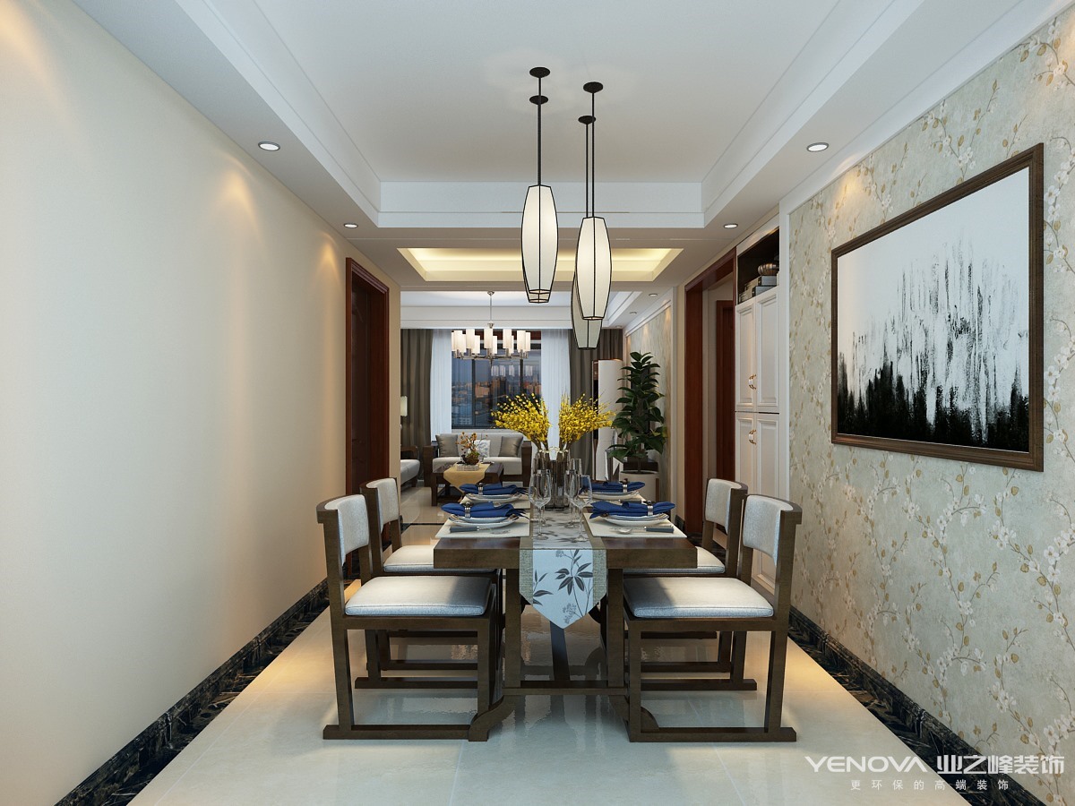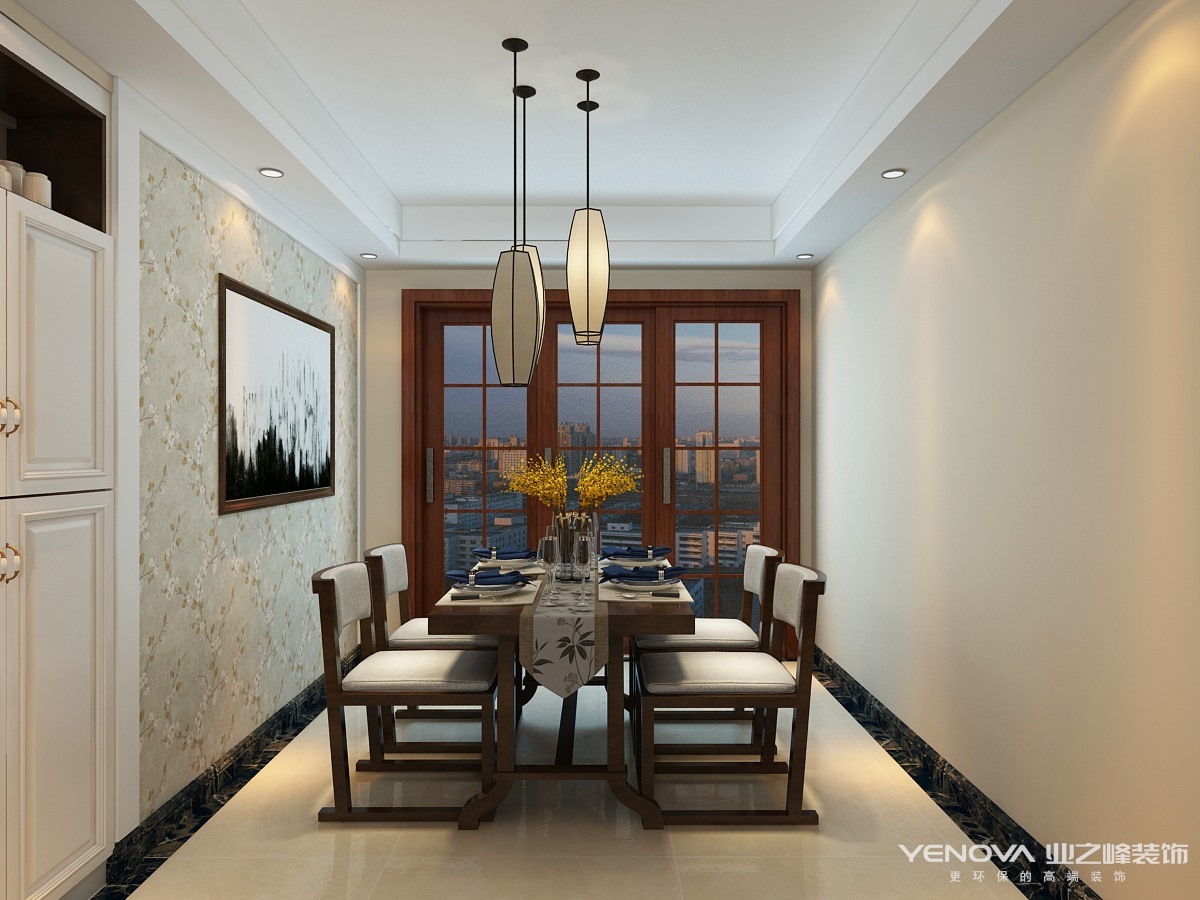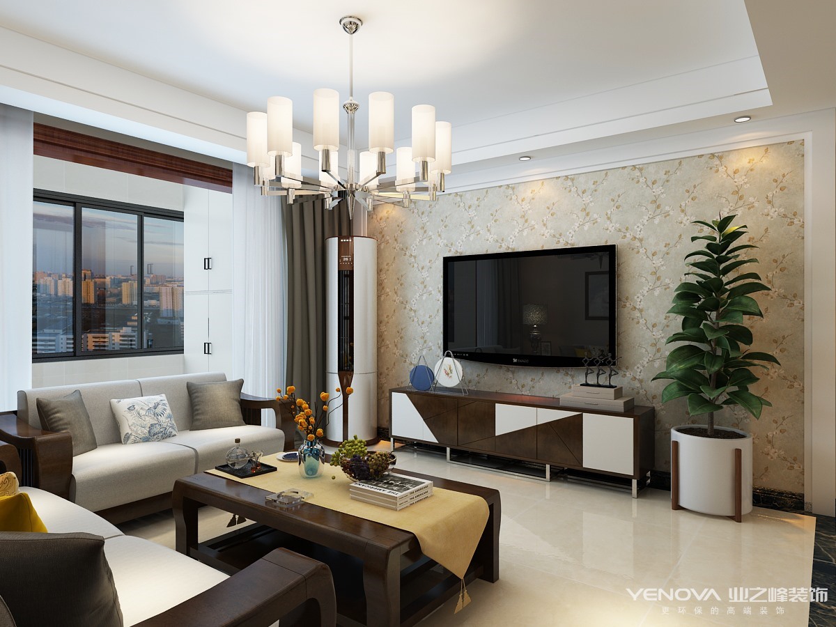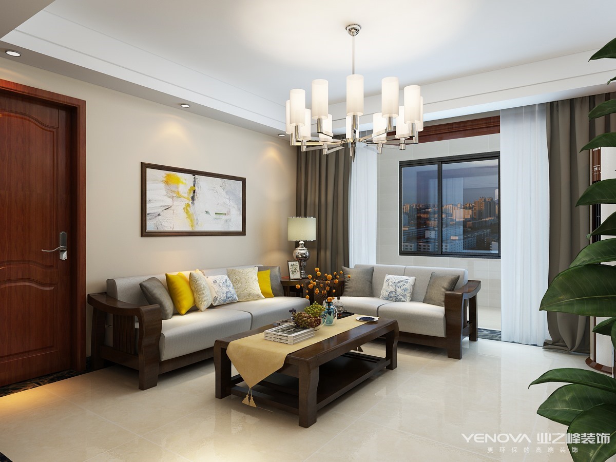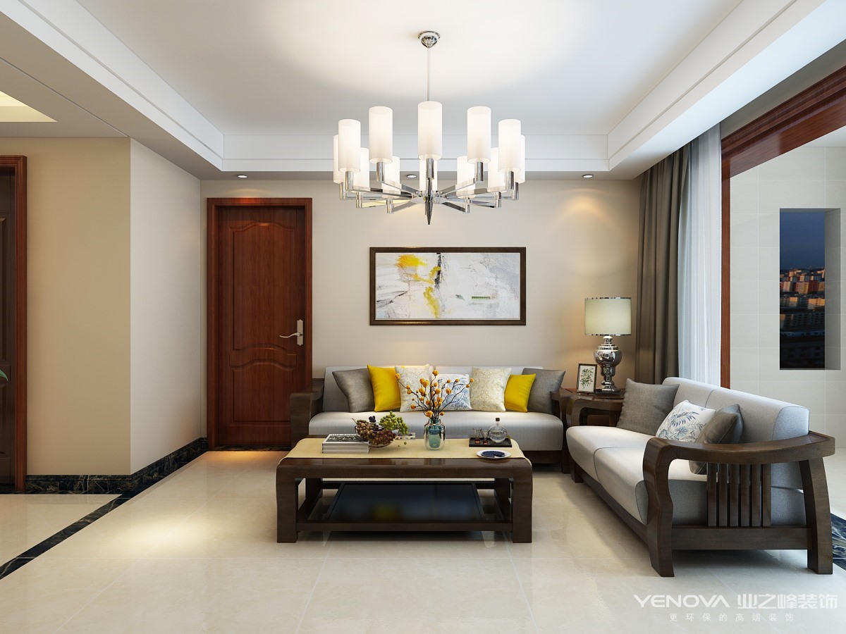 本案吸纳了现代简洁的生活流线,以符合现代人生活习惯的室内居住空间实现舒适的居住生活。其内的空间布置,如客厅、餐厅、卧室、书房等完全体现了现代生活要求。在室内色彩方面,本案以红色、暗红、白等颜色来营造现代中式的气氛。除了保留中式的韵味外,还加入了大理石、玻璃、灯带、牛眼灯等现代材料,使空间又包含了现代生活气息;在布光上采用柔和的色调,突破了传统中式照明的烛光环境,采用的是简洁几何造型的灯具。在家具搭配上,使用了简洁硬朗的直线式家具,不仅可以体现现代人追求简单生活居住要求,也迎合了中式家具讲究的内敛质朴的设计风格,使现代中式风格更加实用,更富有现代感。这些细节上的摆布,将古典中式美注入简洁实用的现代设计中。