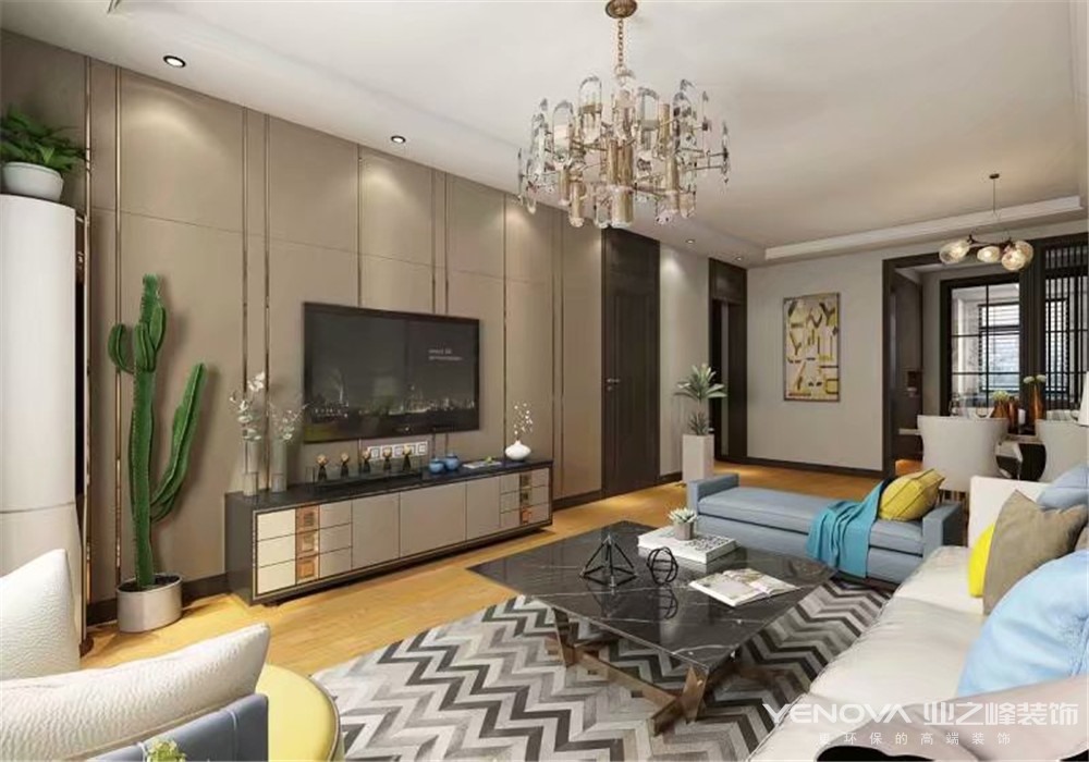 现代简约风格在应用此小区青岛高档社区,此户型是套三双卫户型,门口的厨房为开放式厨房,整体格局有了很大的调整,走廊玄关,衣帽间,卫生间,卧室的墙体均有调整,这样整个房子的空间布局得到了最优的设计,墙面木制造型加上了不金色不锈钢条,家具也镶了金边,整体有一种低调的奢华,又不失为时尚,室内多采用对称式的布局方式,格调高雅,造型简朴优美,色彩温馨而成熟。